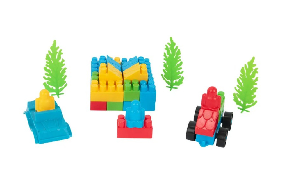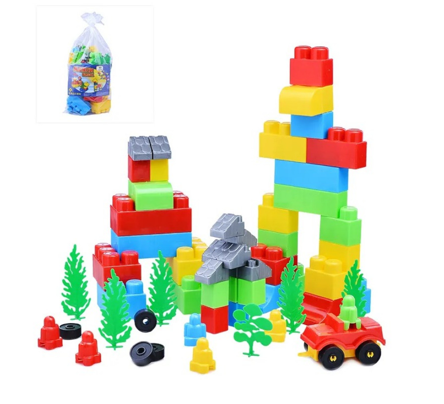 Классический пластиковый конструктор состоит из 60 деталей, что означает возможность построить множество интересных сооружений. Все детали конструктора имеют большие формы и безопасны для здоровья малыша. Детали легко и прочно соединяются между собой. Постройки можно применить для сюжетно-ролевых игр. Занятие конструктором - это всегда творческая деятельность, способная раскрыть фантазию ребенка. В каком-то смысле ребенок сможет выразить свой внутренний мир через построенные игрушки, а родители, увидев его творения, смогут лучше понять ребенка и подкорректировать свое отношение к нему в случае необходимости. Конструктор состоит из разноцветных деталей разной длины. В наборе: платформы с колесами, оконные, дверные рамы и крыши для строительства домов, съемные корпусы машин, фигурки деревьев, модули забора с основаниями. Игра способствует развитию мелкой моторики и координации движений обеих рук, образного и пространственного мышления, воображения.