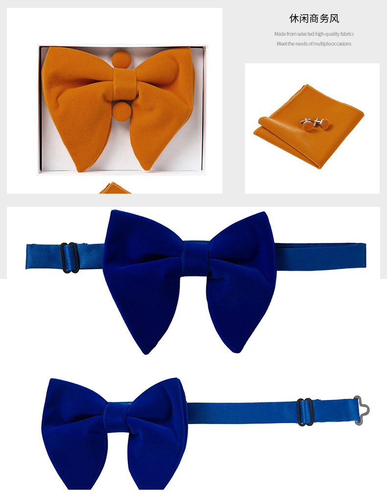 Серый мужской предварительно завязанный негабаритный галстук-бабочка Смокинг Бархатный розовый галстук-бабочка Запонки Платок Наборы Красочная повседневная одежда Подарочная коробка для Hombre