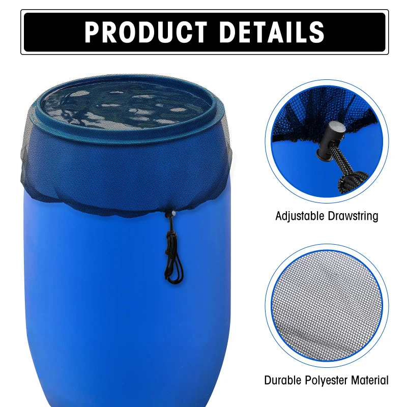 -Our water butt net comes with a practical drawstring so that even smaller water barrels fit Easy to install, you just need to put the mesh cover on the bucket and it is done.