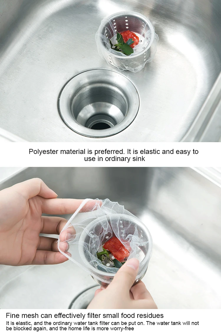 Сетчатый фильтр для раковины 100 шт., кухонный мешок для мусора, предотвращает засорение раковины, фильтр для кухни, ванной, мешок для мусора