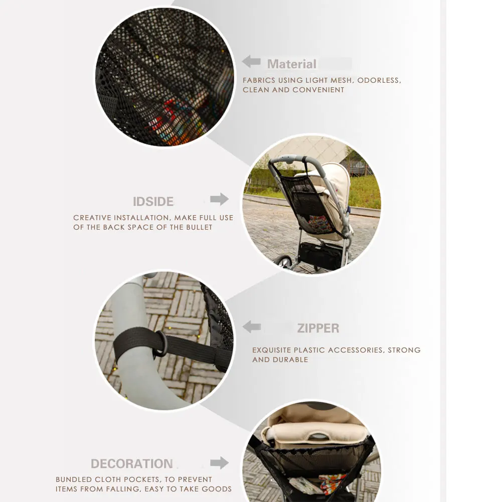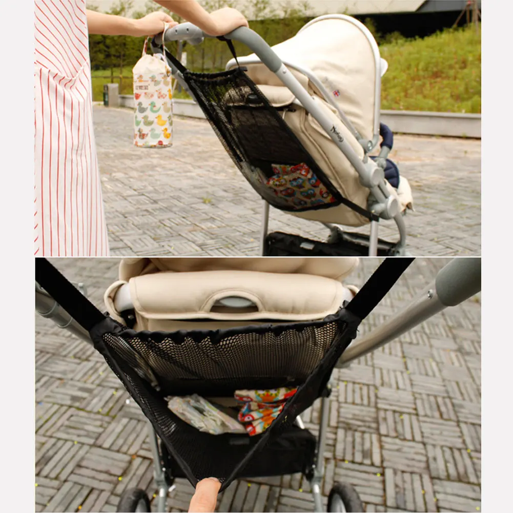 Сетчатый карман для детской коляски, органайзер для хранения подгузников и бутылок, подвесной держатель, аксессуары для коляски большого размера