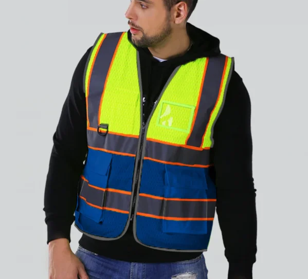 Индивидуальный защитный жилет с логотипом класса 2 Светоотражающий строительный жилет Молния спереди соответствует стандартам ANSI/ISEA