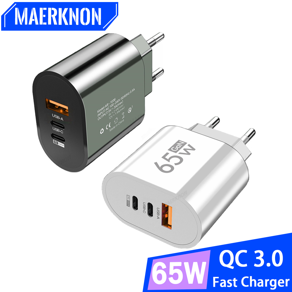 65 Вт GaN USB зарядное устройство Быстрая зарядка 3,0 PD Тип C Быстрая зарядка Телефон адаптер питания для iPhone Xiaomi Samgsung 3 порта настенное зарядное устройство
