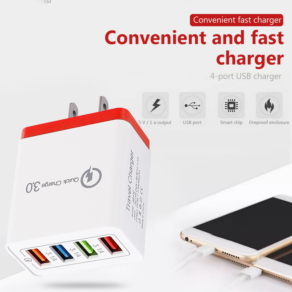 Портативное 4 порта Smart USB Цветное зарядное устройство 3A Быстрая зарядка Зарядное устройство для телефона US Plug Адаптер Универсальный