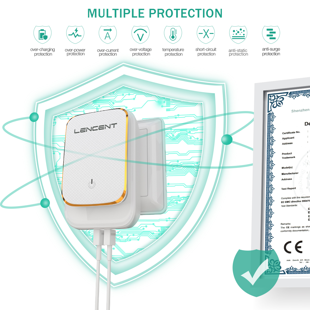 Сертификаты EMC/LVD/ROHS делают этот дорожный Штепсель безопасной системой, с которой автоматически прекратится зарядка, как только устройства будут полностью заряжены, или перегреваться, перегрузки или короткого замыкания.