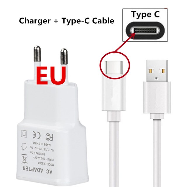 Сетевое зарядное устройство с USB-кабелем Type-c для Samsung Galaxy S10, S10e, S9, S8, S7, S6 Edge Plus Note 9, 8, A10, A20, A30, A40, A50