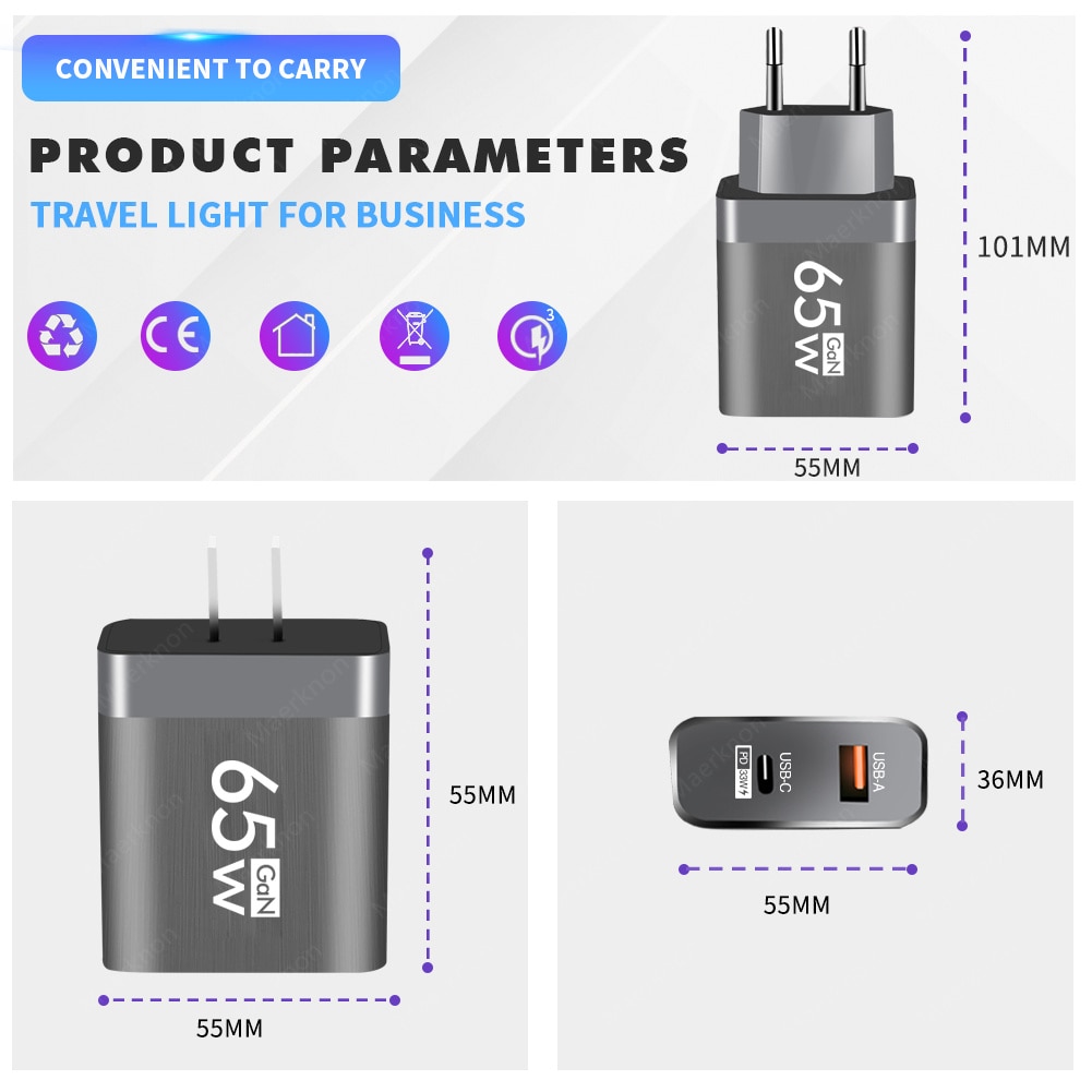 USB зарядное устройство PD Быстрая Зарядка Тип C 65 Вт GaN адаптер для быстрой зарядки для iPhone 14 Pro Xiaomi 13 Samsung Huawei настенное зарядное устройство для телефона