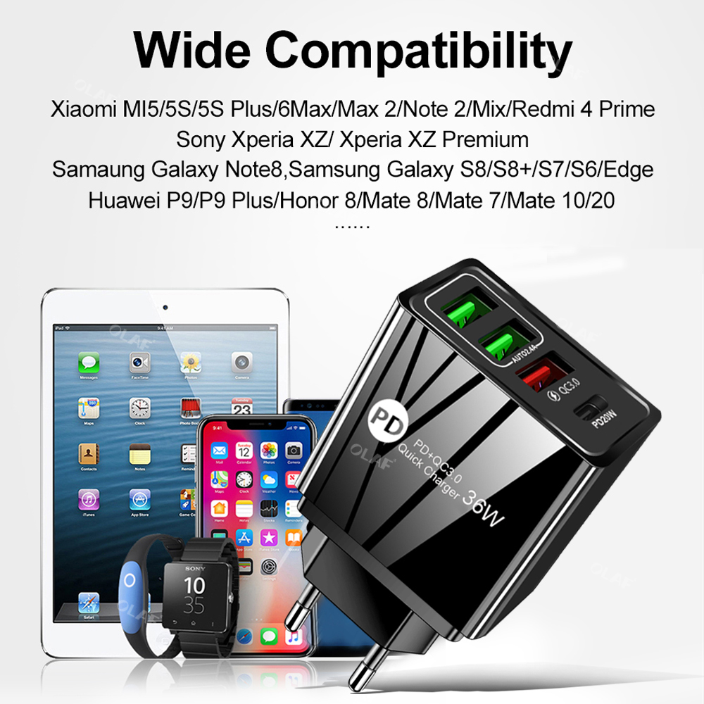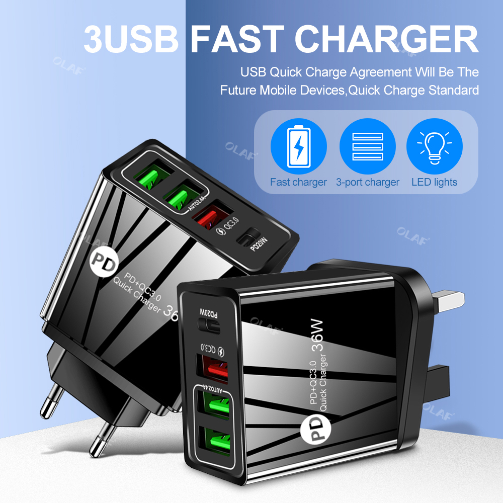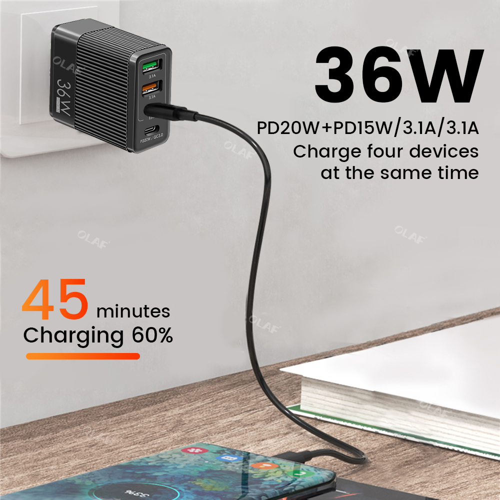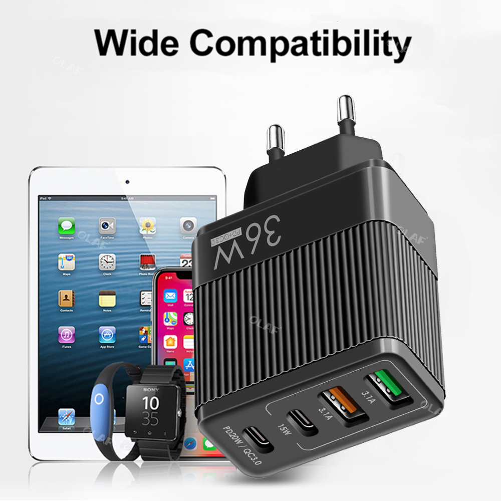 Сетевое зарядное устройство USB Type-C, 36 Вт, QC 3,0