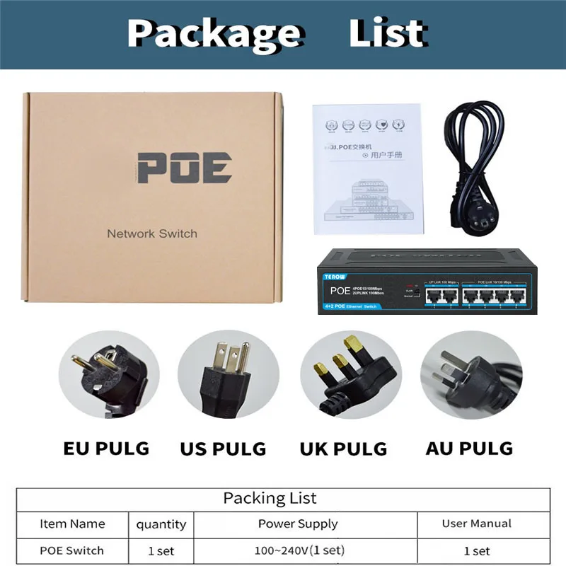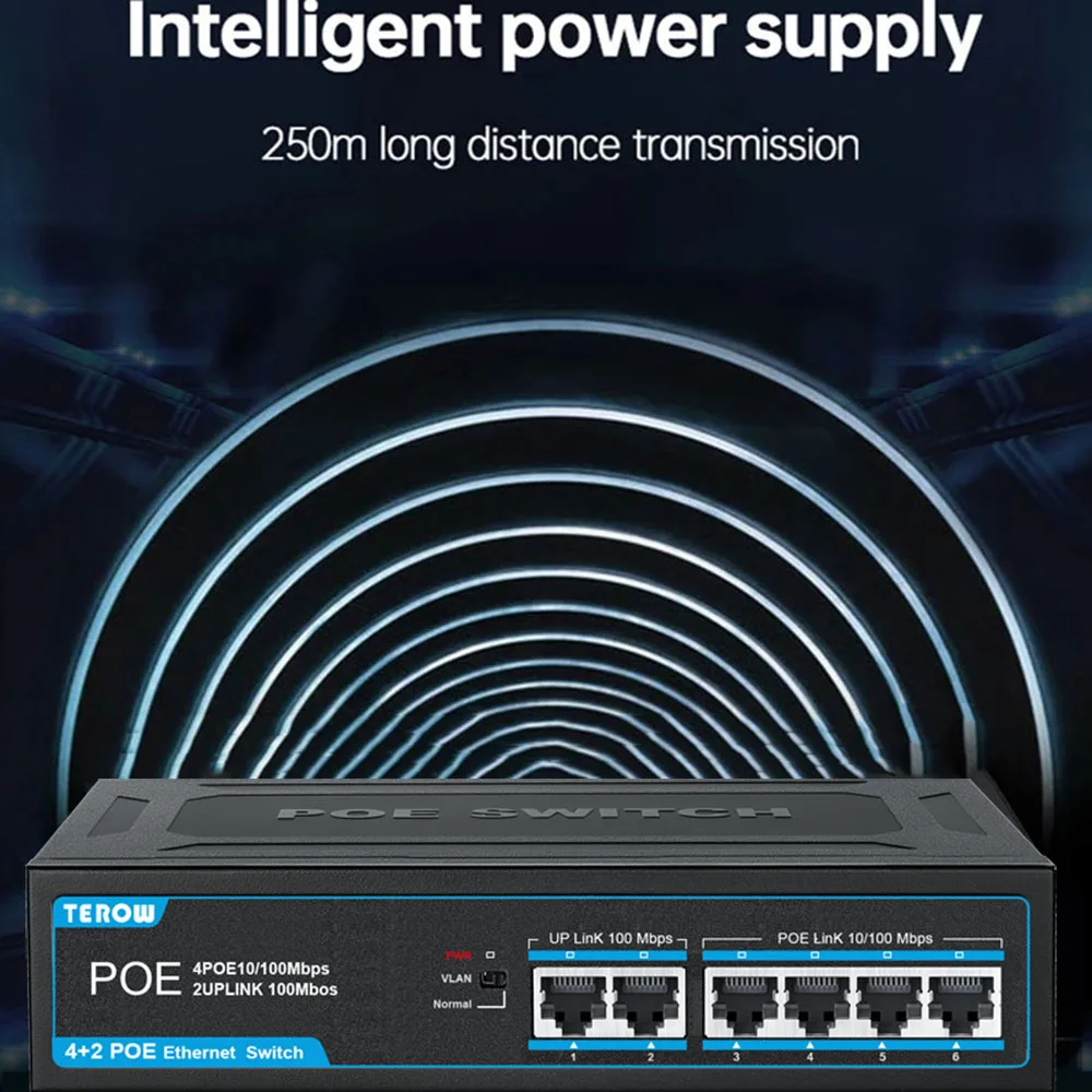 Сетевой коммутатор POE с 4 портами и 2 портами Uplink, 100 Мбит/с