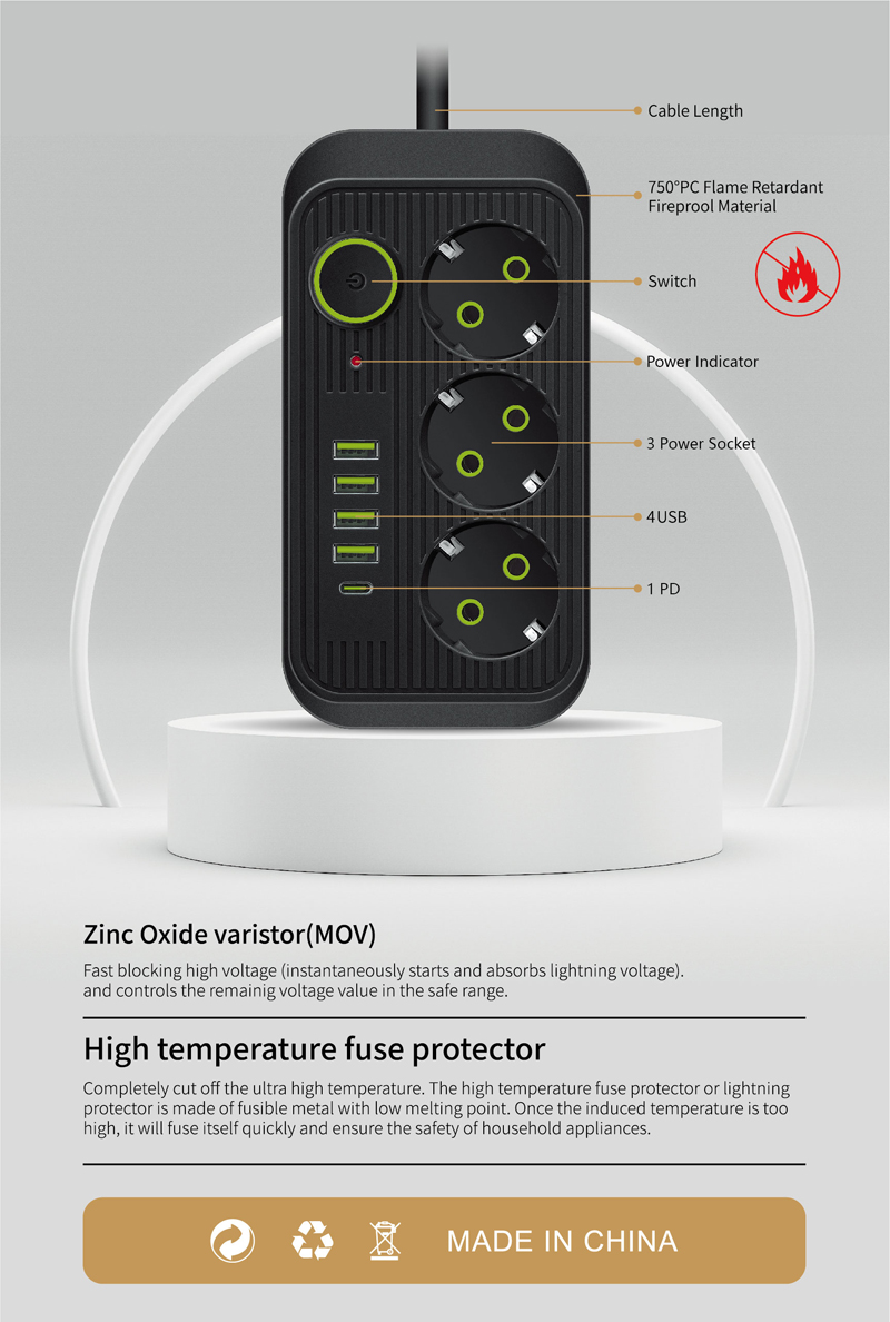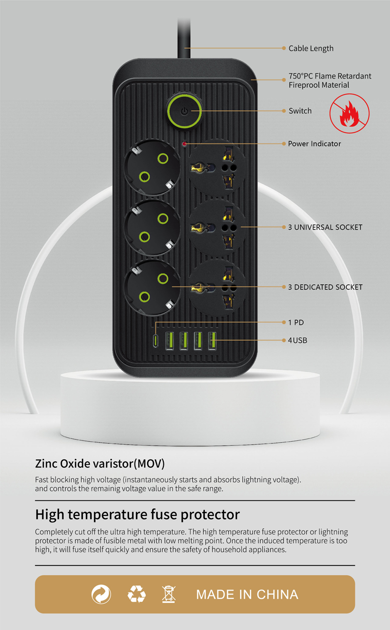 Домашняя розетка расширения: офисная вилка с розеткой/Smart Power Strip (ЕС)