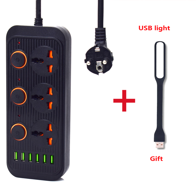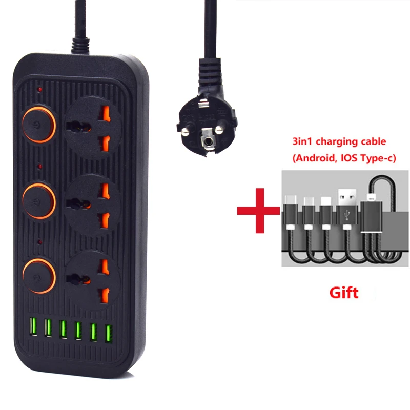 Сетевой удлинитель с 2 круглыми контактами, 6 USB-портов, 1,8 м
