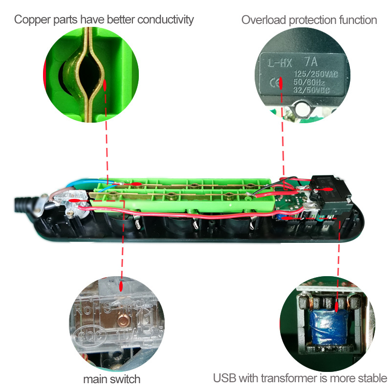 Может использоваться в основных электрических вилках, эластичный, прочный, с меньшим нагревом, высокой безопасностью, вставлять и извлекать 10000 раз при нормальном использовании, не будет ослаблен.