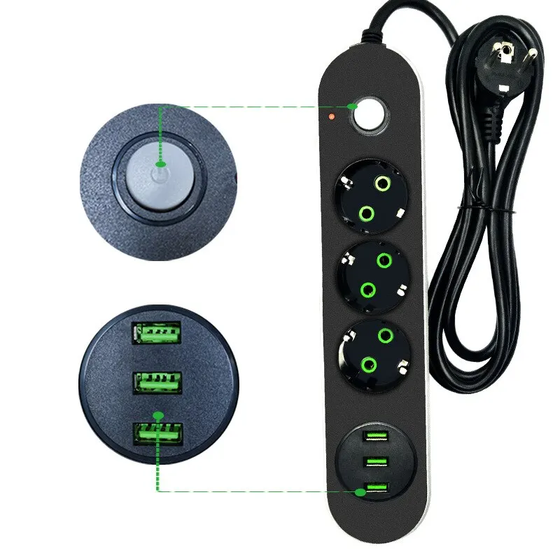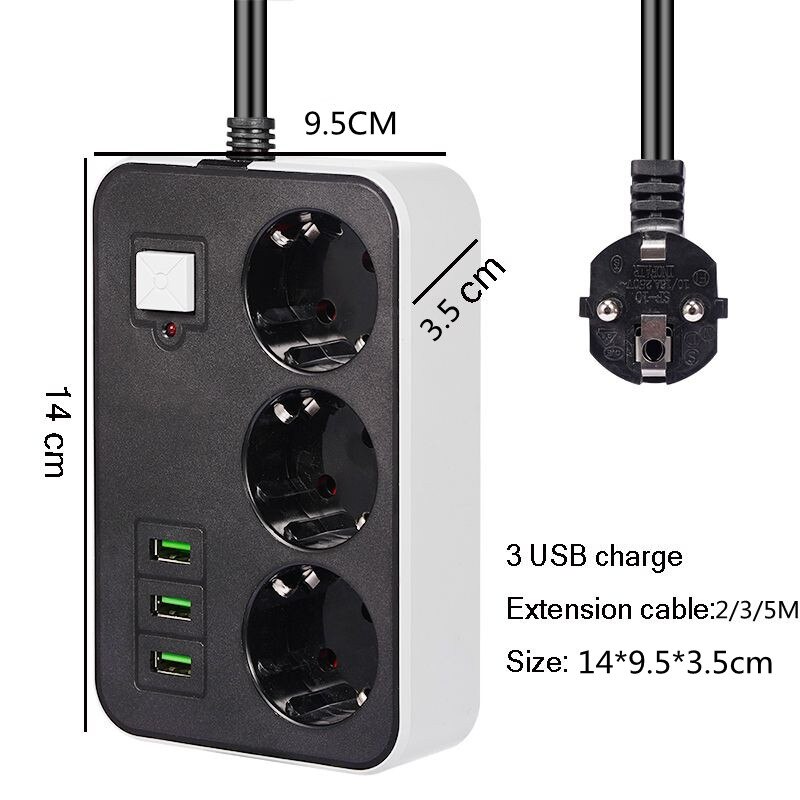 Сетевой удлинитель с 2 розетками, USB-адаптер для путешествий