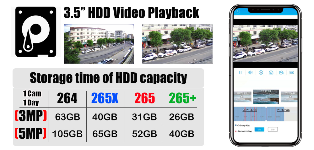 Основные характеристики: улучшенное сжатие H.265 +, передача видео высокого качества и сохранение памяти