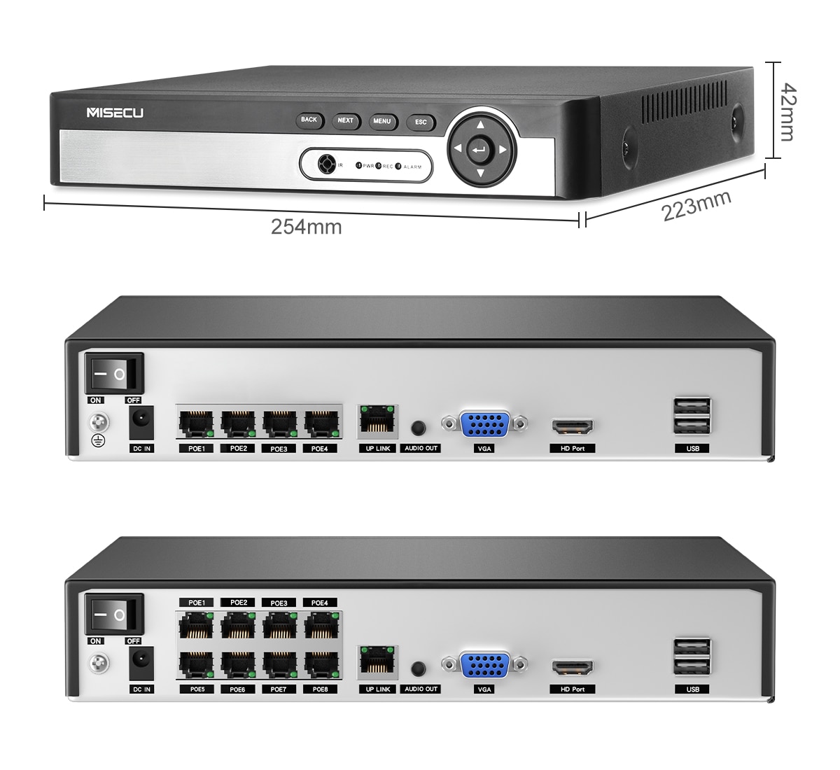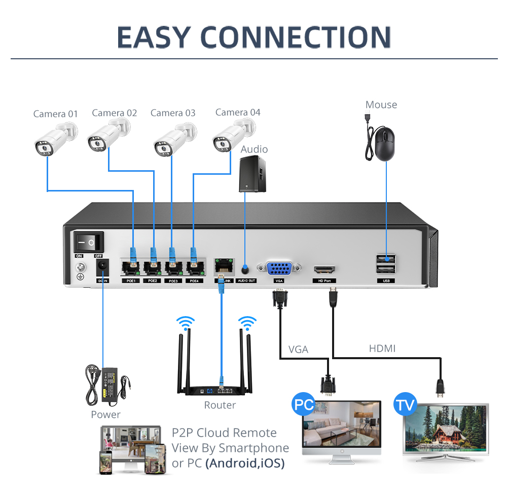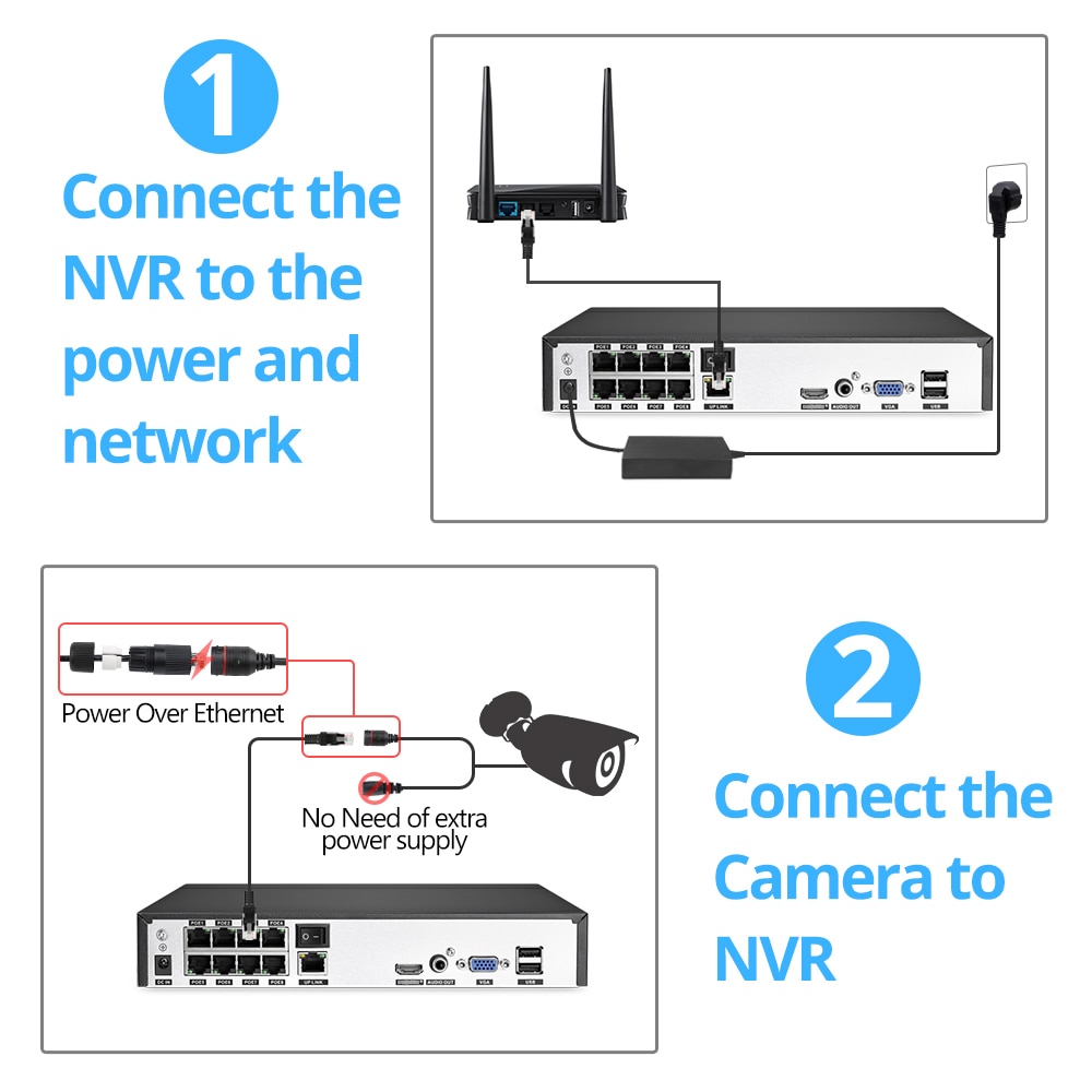 Наш 8-канальный сетевой видеорегистратор POE может достигать 16 каналов, поэтому вы можете подключить максимум 16 камер с помощью переключателя POE. Другой сетевой видеорегистратор поддерживает только 8 каналов макс.