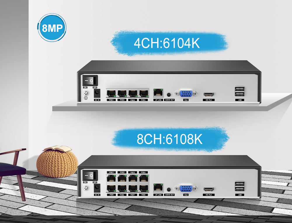 Наш 8-канальный сетевой видеорегистратор может поддерживать 8MP макс. Другой сетевой видеорегистратор поддерживает только 5MP макс.
