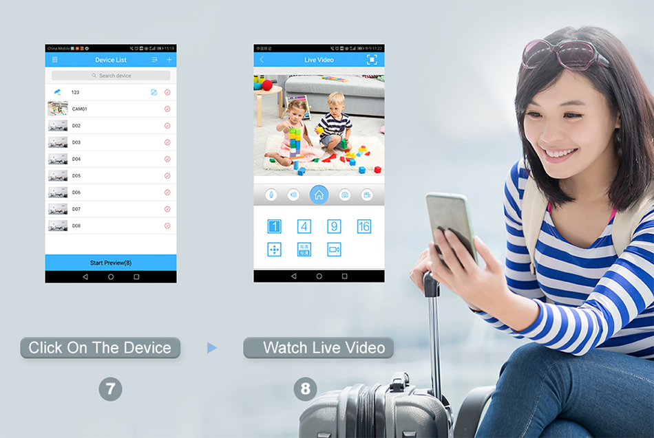 Он может быть быстро и легко настроен кем угодно. Мгновенно смотрите видео в реальном времени с помощью компьютера, планшета или телефона из любого места.