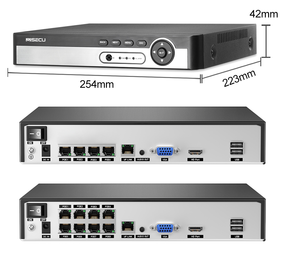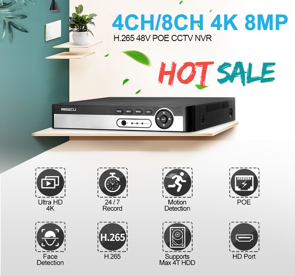 Сетевой видеорегистратор MISECU, H.265, 4 канала, 8 каналов, 1080P, 5 Мп, 8 Мп, 4K
