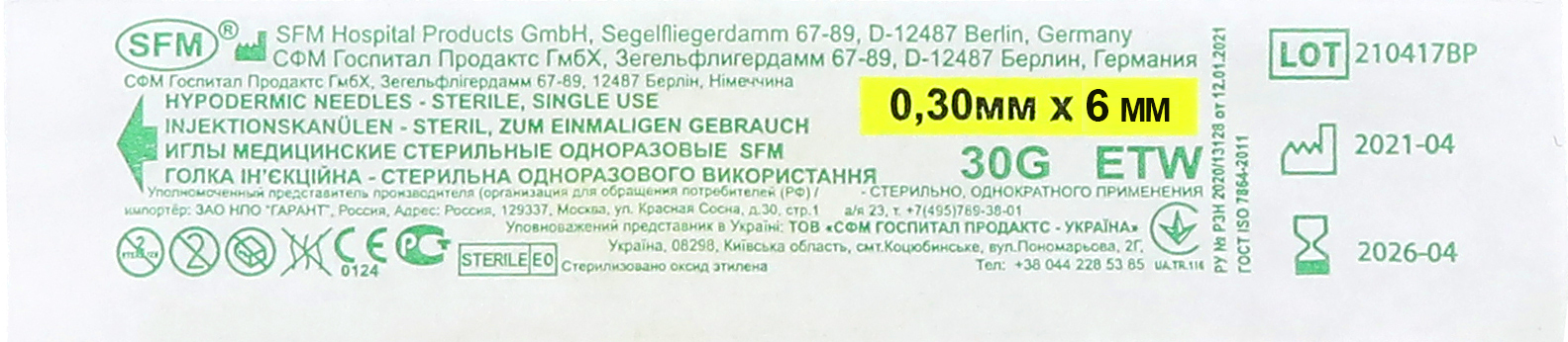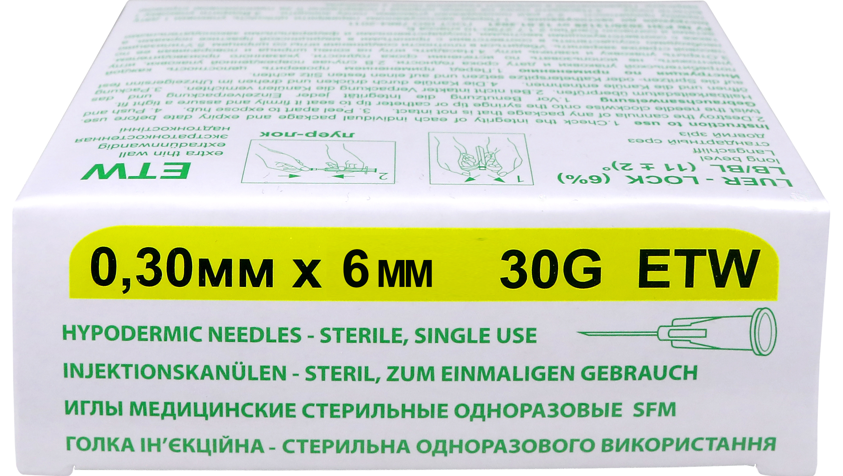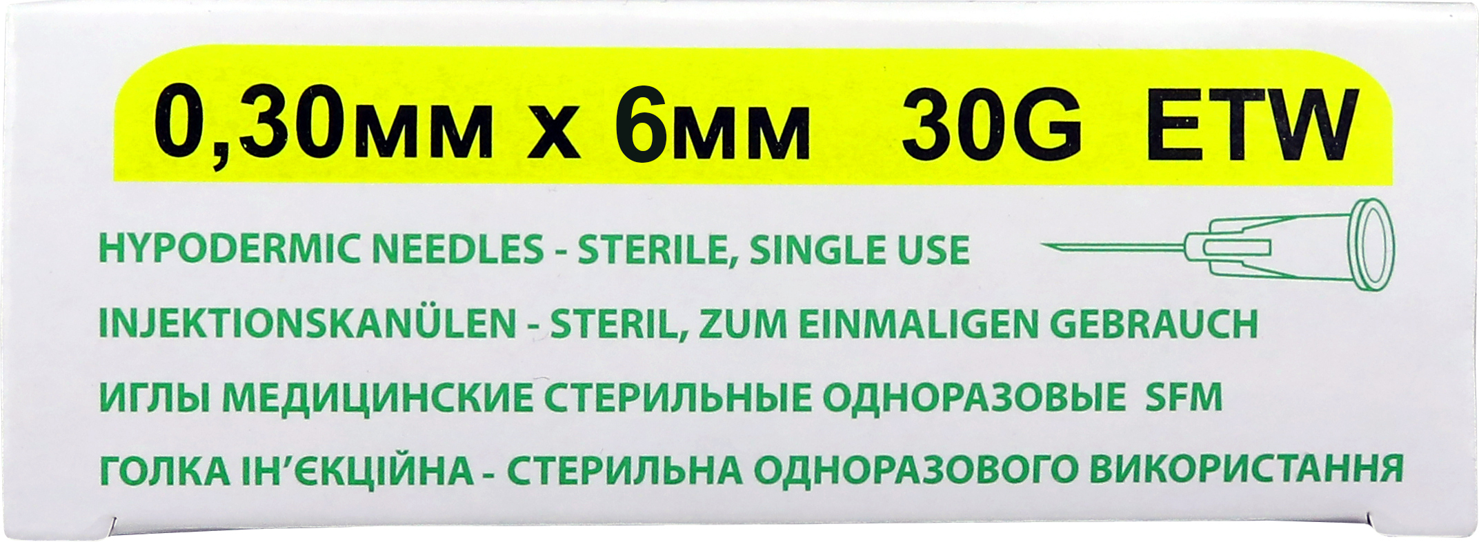 SFM. Иглы стерильные одноразовые медицинские, игла канюля для мезотерапии, 0,30мм х 6 мм 30G №50 шт