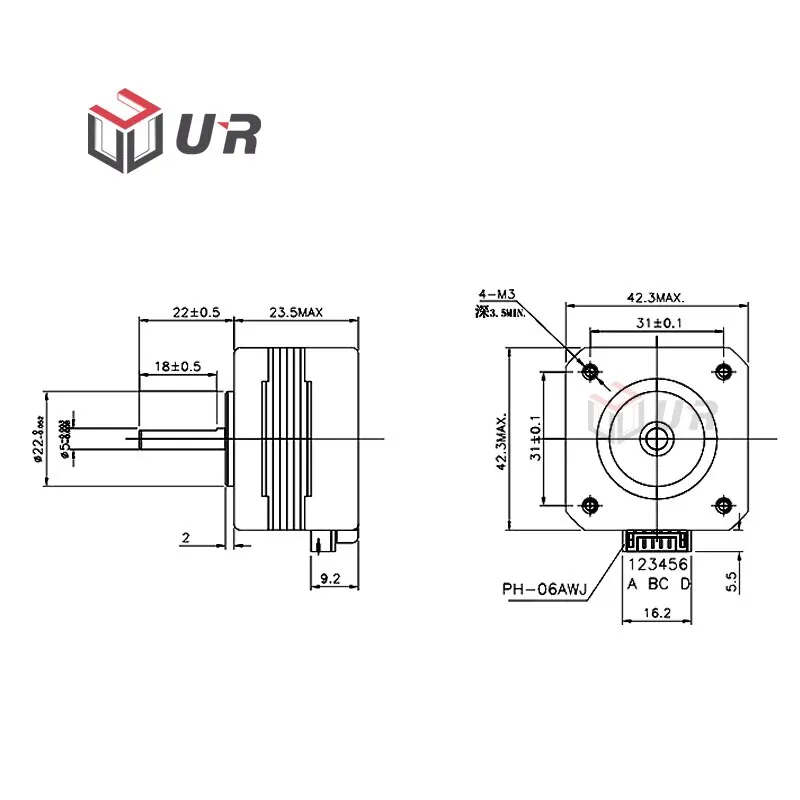 • Угол шага: 1.8° ±0.09° (1 оборот - 200 шагов)