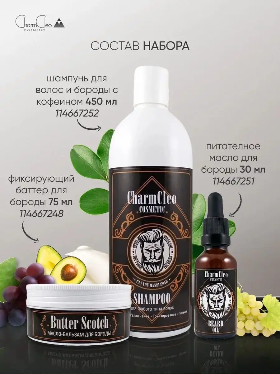 Шампунь бальзам масло для волос лица бороды смягчающее набор
