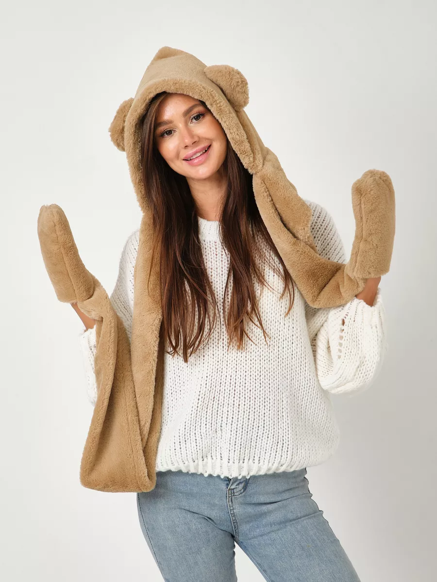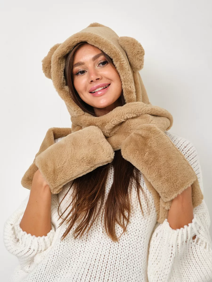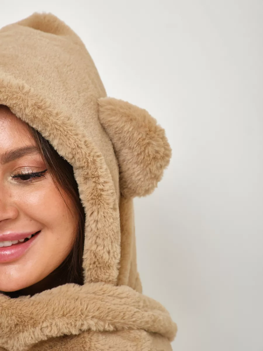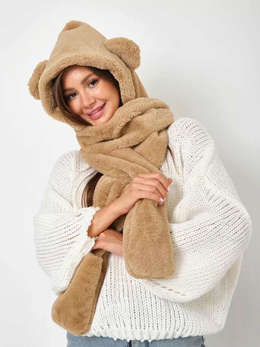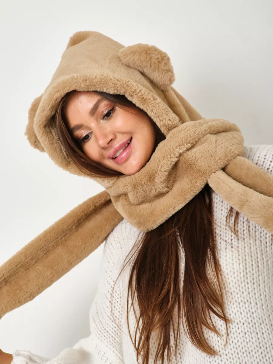 Описание: ВНИМАНИЕ! 3590р. - фиксированная цена на шапки в 2022 и 2023г. Если вы видите цену ниже, вам повезло! Ловите скидку! :) СДЕЛАНО В РОССИИ. Невероятно мягкая и теплая женская шапка зимняя с ушками стильный и яркий аксессуар для женщин, девочек, девушек и подростков и настоящий тренд этого сезона. Головной убор 3 в 1 заменит шапку, шарф или снуд, варежки или перчатки. Изготовлена из высококачественного, премиального эко меха. Два слоя меха надежно защищают от холодов и морозов, а удобная форма шапочки в виде капора с шарфом и варежками позволяет носить шапку как свободный съемный капюшон или затянуть шубку тедди плотнее, закрыть голову, уши и шею и носить как шапку ушанку. Благодаря регулируемому размеру шапочка идеально подойдет на любой размер головы как шапка женская, детская или стильная шапка для девочки подростка. Шапка с шарфом и ушками Тедди представлена в нескольких цветах бежевая, белая, черная или розовая шапка, что позволяет выбрать цвет, который идеально будет сочетаться с Вашим гардеробом. Осенняя или зимняя демисезонная шапка станет превосходным подарком любимой девушке, подруге или дочке на любой праздник (На новый год, рождество 2023, именины, день рождения...) Шапка-ушанка. Шапка ушанка с ушками. Комплект шапка и шарф. Головные уборы для женщин. Шапка женская зимняя меховая будет согревать вас в морозные русские зимы! Шапка универсальная, комплект (набор). Она одновременно шапка, снуд, шарф, перчатки или капор (съемный капюшон). Подростковая шапка или шапка для подростка идеально подойдёт для креативных и уникальных девушек. Шапка с шарфом женская выделит из толпы и подарит яркие эмоции вам и окружающим. Подходит наша шапка со снудом и для девочки 7-13 лет, и для подростков, и для взрослых. Размер и теплота шапки удобно регулируются. Комплект шапка и шарф - незаменимый аксессуар для тех, кто не любит носить шапки. А так же для тех, кто любит быть креативным, не боится проявлять себя и ценит практичность в деталях. Шапка с ушами сшита с любовью в России. Заказывайте шапочку на примерку! С уважением, команда бренда SHAPOSHKI LAPOCHKI.