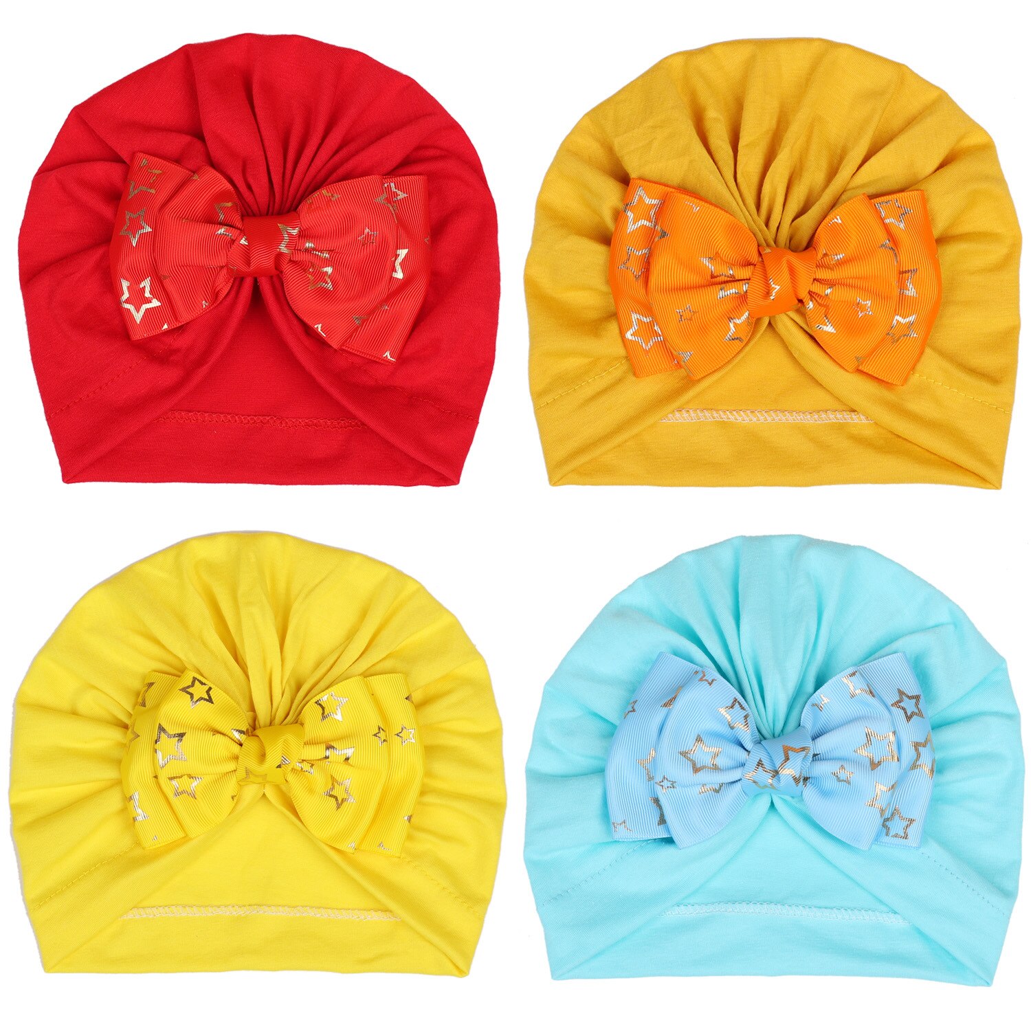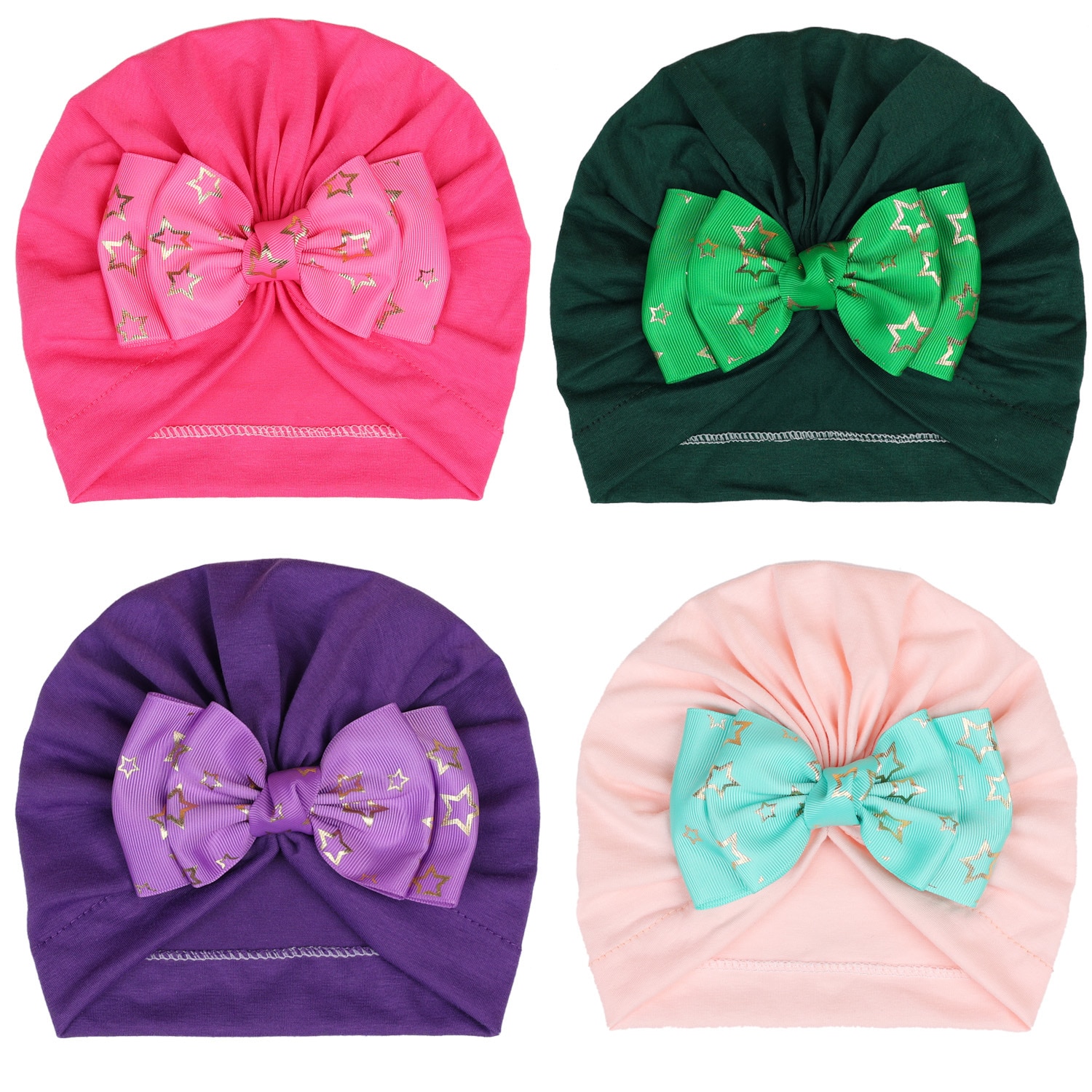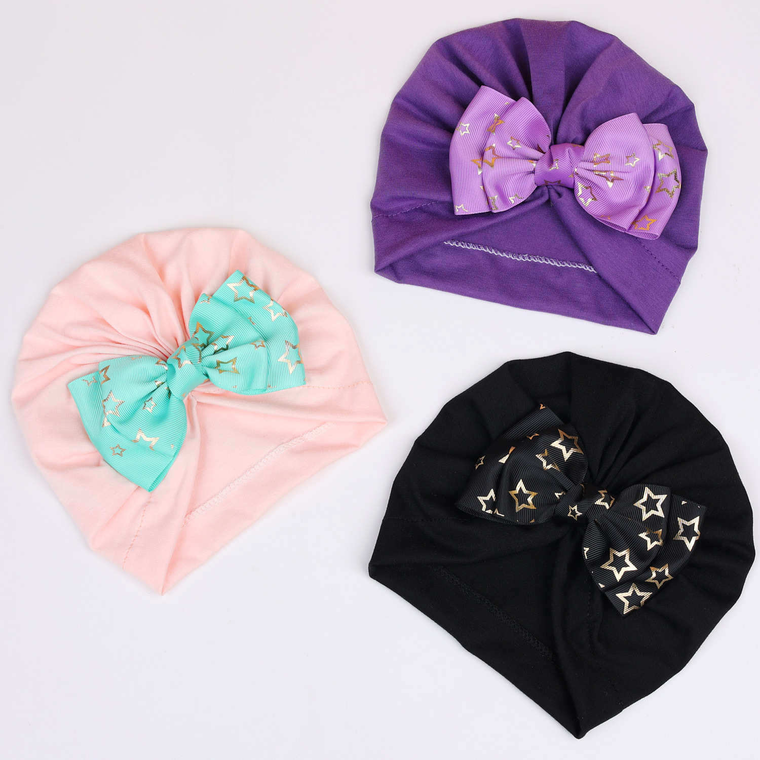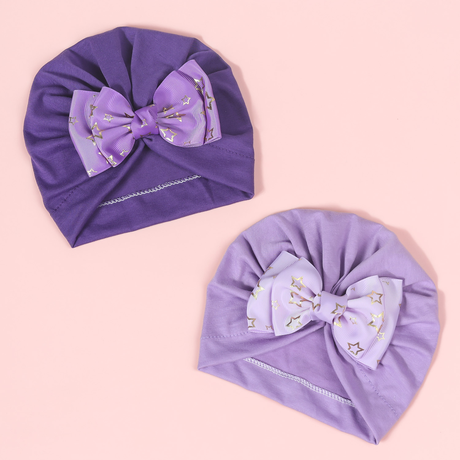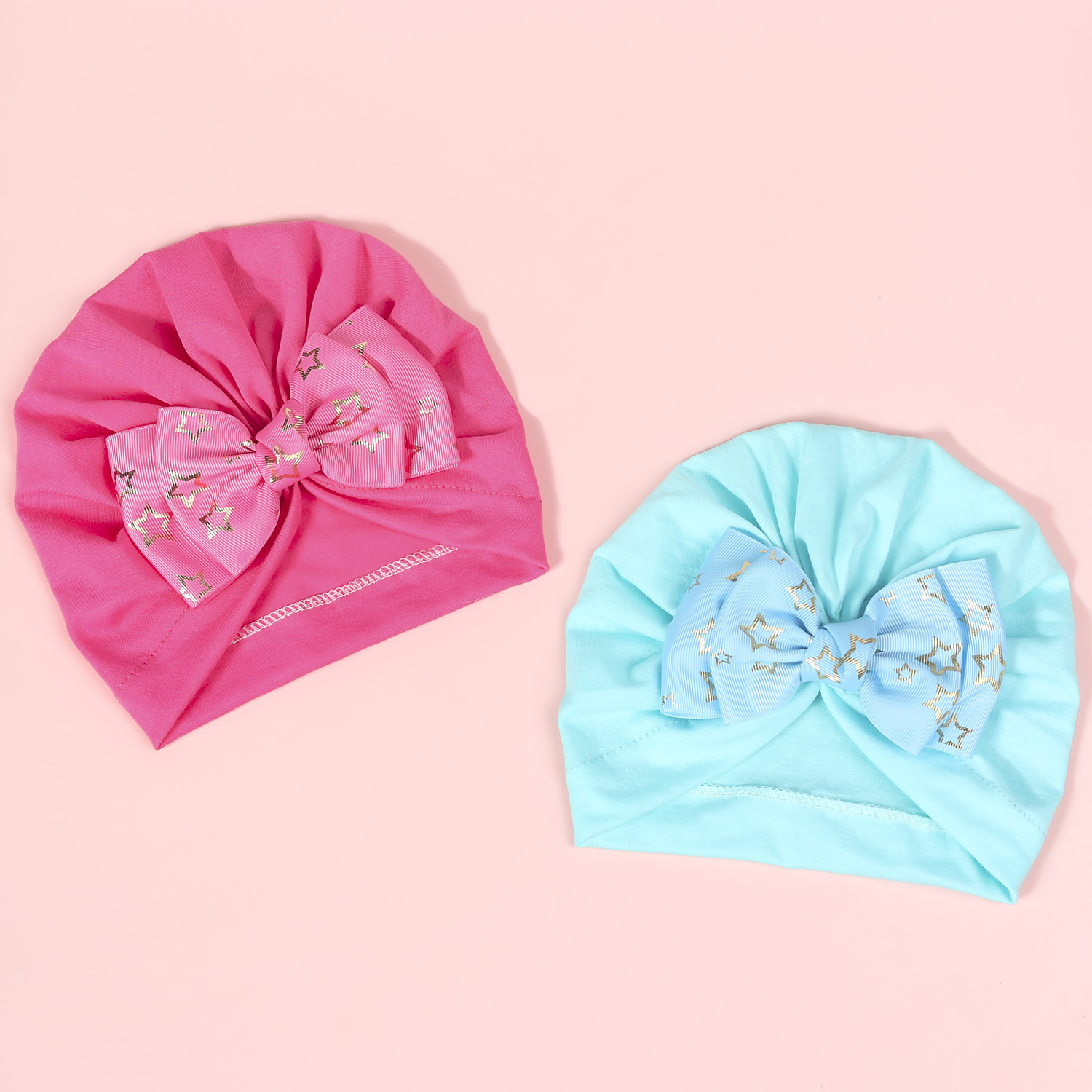 Шапка-бини для новорожденных девочек, мягкая хлопковая эластичная шапка с двойным бантом, весна-осень