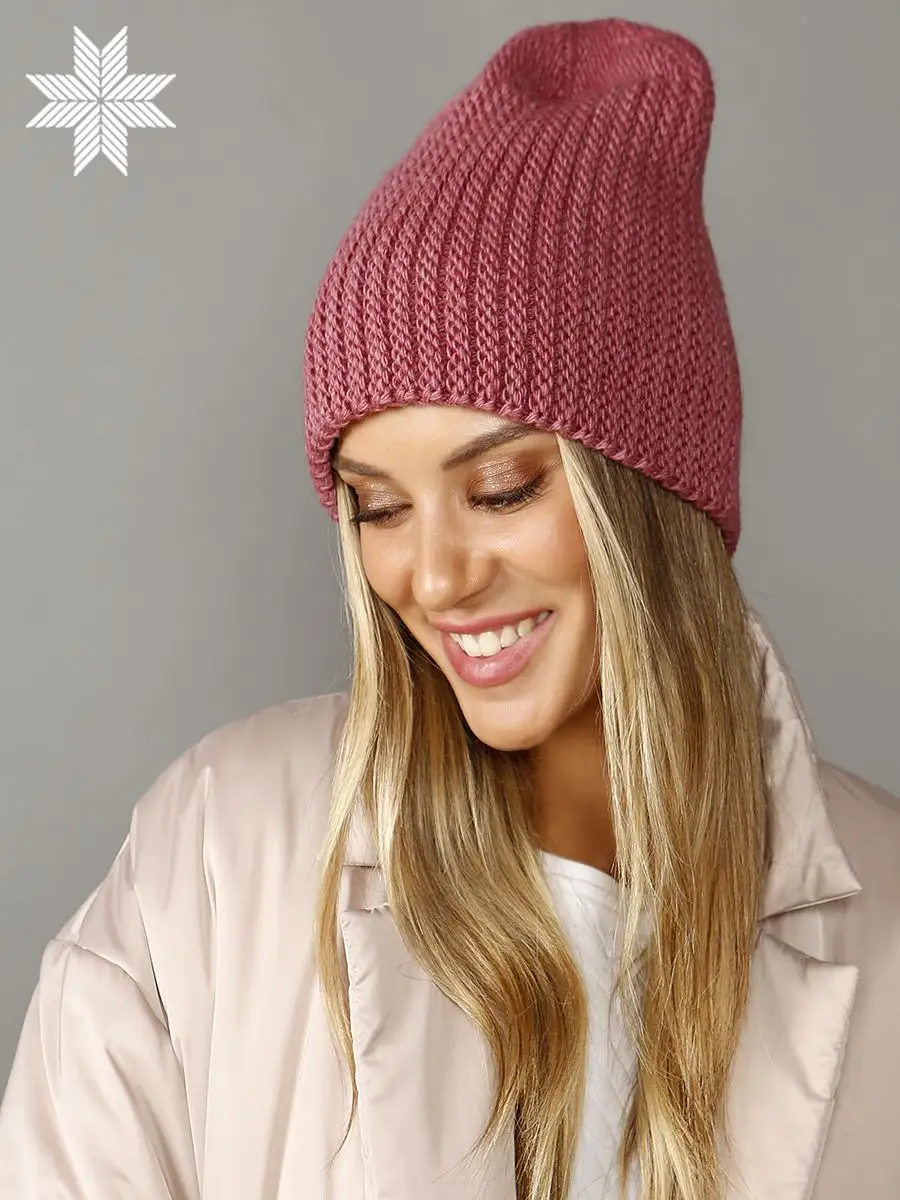 Описание: Добро пожаловать в стильный мир головных уборов известного производителя вязаных аксессуаров в России Siberika! Предлагаем вам самую популярную и трендовую модель Герда шапка женская бини вязаная без отворота, которая полюбилась многим представительницам прекрасного пола. Зимняя шерстяная шапка beanie с высокой макушкой имеет декоративную шлицу сзади, которая придает изюминку данной модели. Благодаря разрезу шапочка комфортно облегает голову, не сдавливая ее и не приминая прическу. Шапка женская тонкая, при этом достаточно плотная выполнена из мягкой полушерстяной пряжи. В состав входит акрил, за счет чего вязаное изделие не растягивается и сохраняет форму. Шапка луковка без подворота одинарная благодаря плотной крупной вязке и уникальной технологии производства станет идеальным выбором для теплой зимы, в осеннюю или весеннюю погоду и в демисезон. Модную демисезонную шапку лапша можно носить с глубокой посадкой или свободнее торчком. Вязанная шапка весна-осень подойдет взрослым женщинам, девушкам, девочкам подросткам, всем кто желает выглядеть стильно и лаконично. Подростковая молодежная шапка-бини тыковка в модном темно розовом цвете - это стиль и качество, которые выбирают тысячи наших покупателей. Коллекция брендовых шапок весна осень зима расширена многообразием вязаных аксессуаров, благодаря чему легко подобрать стильный комплект. Теплый уютный набор шапки со снудом, шарфом и варежками станут практичным подарком для любимых и близких на день рождения или новый год, на 14 февраля или просто без повода в знак заботы и внимания. Выбирайте уникальный и стильный головной убор премиум-качества от производителя по доступным ценам и наслаждайтесь максимальным комфортом. Заходите, заказывайте, носите с удовольствием! Связано с Любовью - Siberika!