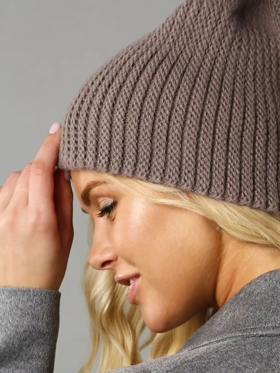 Шапка бини вязаная без отворота шерстяная осень