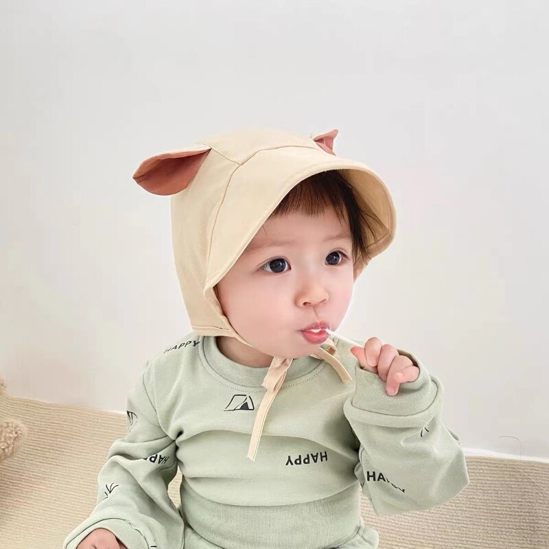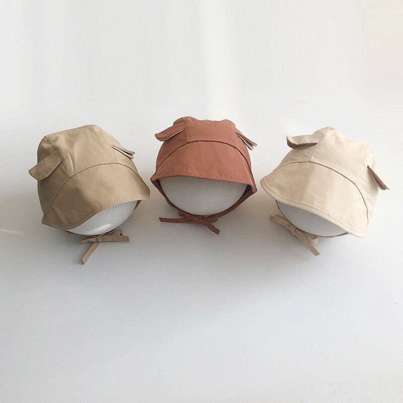 Шапка для новорожденных однотонная в Корейском стиле, хлопковый солнцезащитный козырек с галстуком для маленьких мальчиков и девочек, уличная одежда, весна-лето
