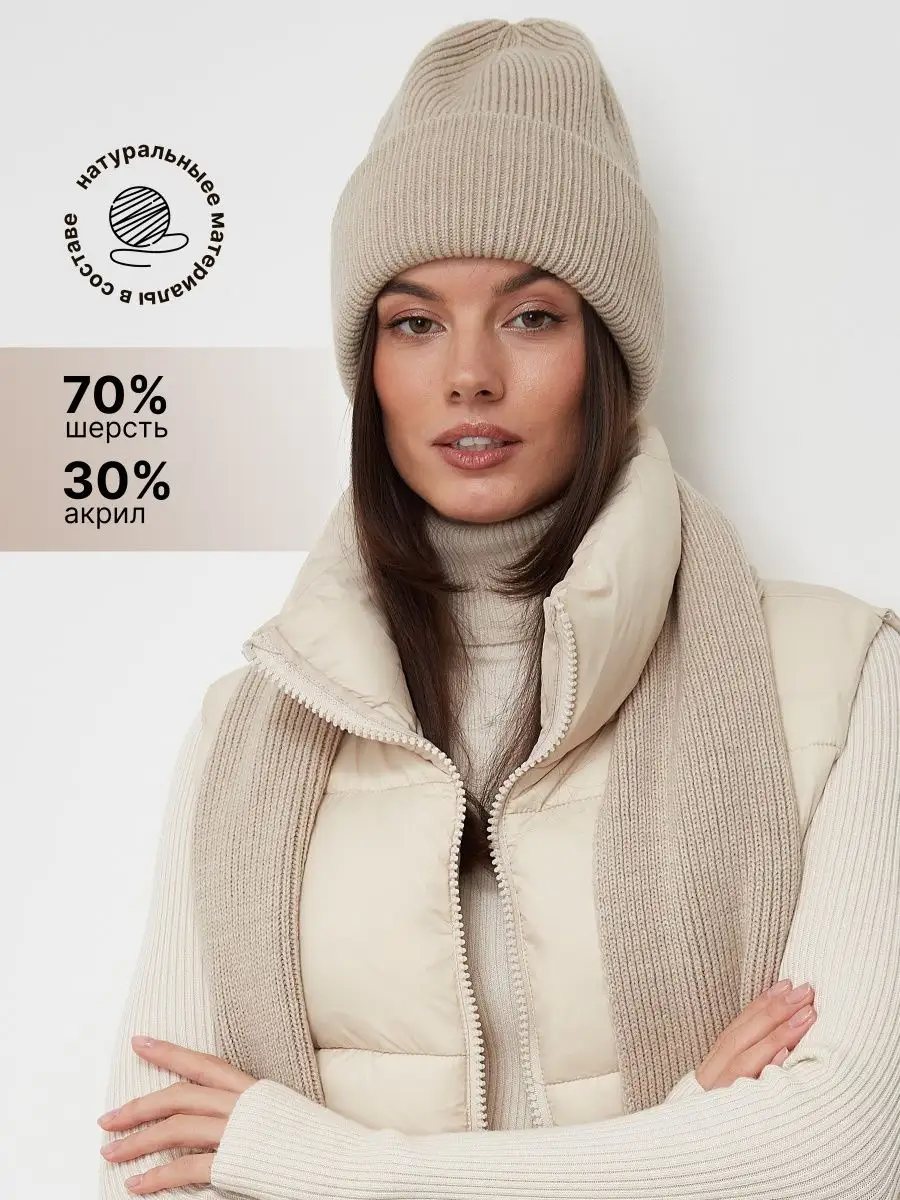 Описание: Зимний женский комплект - стильная шерстяная шапка с теплым длинным шарфом. Найди им место в своем гардеробе, если любишь минималистичные, супертеплые аксессуары для повседневной носки. Основа набора - это классическая женская бини с отворотом, вязаная в рубчик. Чуть вытянутая, держащая форму макушка добавит несколько сантиметров роста. Свободная посадка гарантирует комфортные ощущения: мягкая плотная шапка лапша из шерсти хорошо держится на голове, защищает от холода, при этом не сжимая и не передавливая область лба. Шапка красивая молодеждная однослойная и в меру объемная за счет подворота получается тройной слой трикотажа. Ширину отворота можно регулировать, увеличивая или наоборот, уменьшая высоту головного убора. Вместе шарфик (длина 180см и ширина 27 см) и трикотажная универсальная спортивная шапочка создадут трендовый ансамбль, который добавит выразительности любой девушке, девочке подростку или взрослой женщине. Носи их в модном дуэте и по отдельности, потому что, кроме традиционных широких шарфов, бини дружит с легкими косынками. Если все же предпочитаешь сохранить комплект милая теплая яркая шапка с шарфом, сочетай его с лаконичными однотонными пальто или шубой. В коллекции нашего бренда вы найдете не только комплекты на зиму, но и демисезонные на осень и весну. Ботаника
