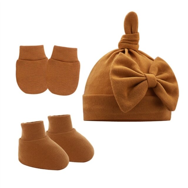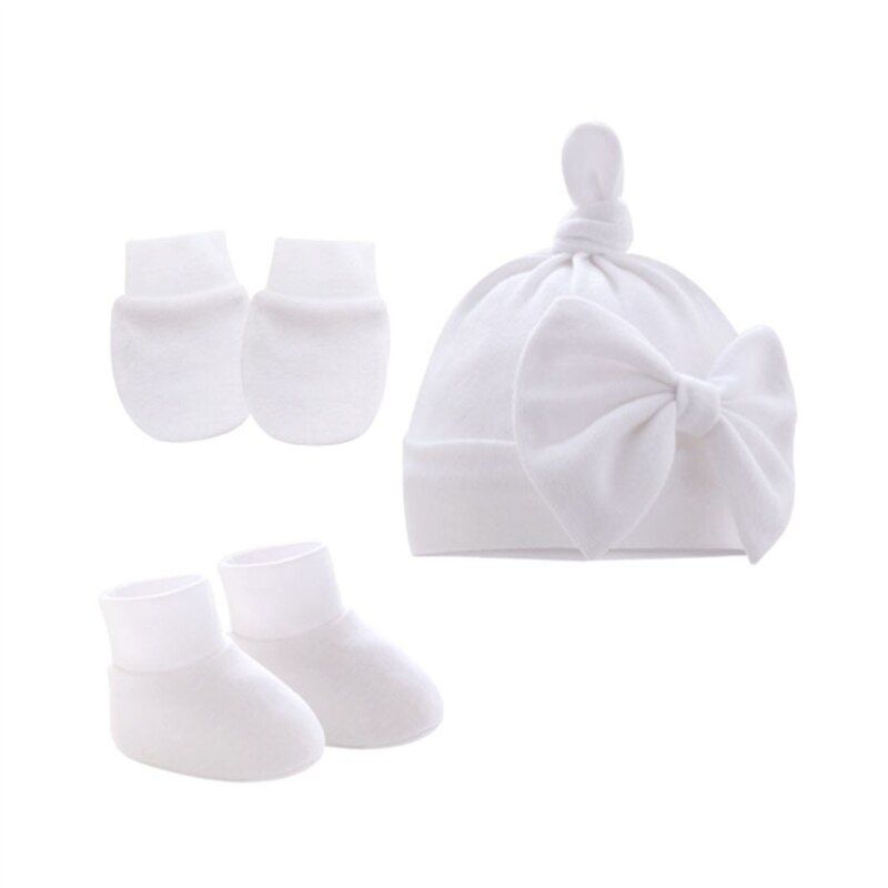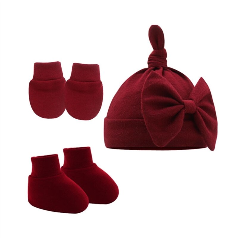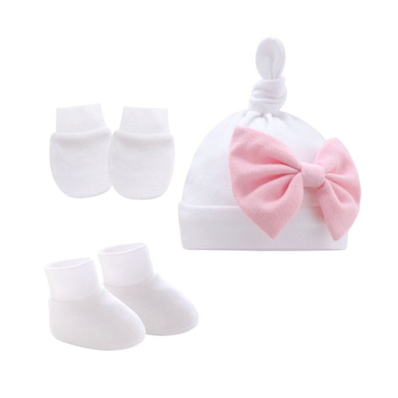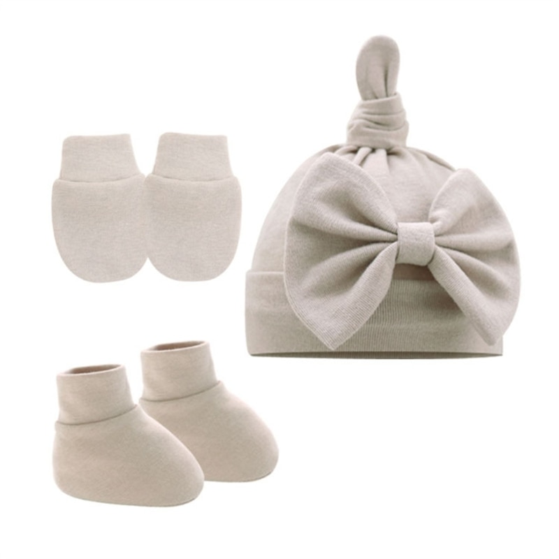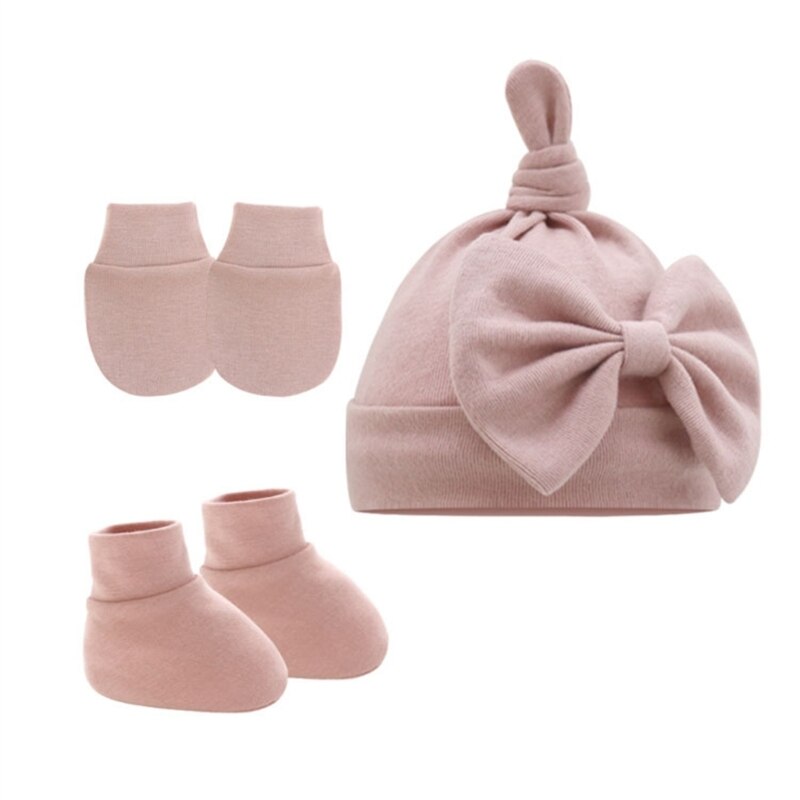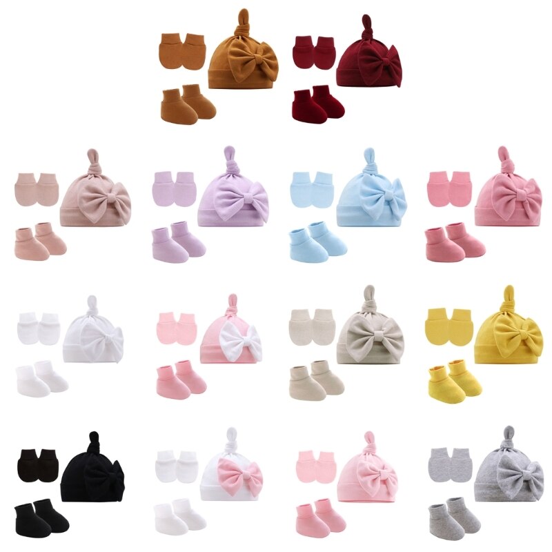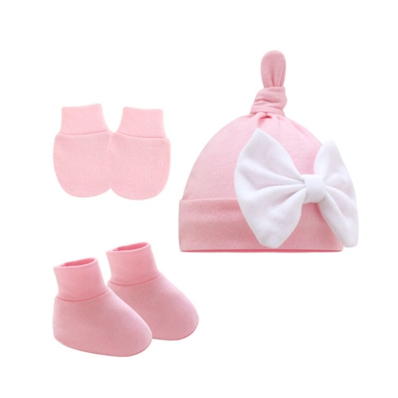 Дышащая Шапка-бини для новорожденных, перчатки и носки до щиколотки: Шапка-бини с прекрасным узлом, качественная строчка и вязание, микроэластичная, легко моется, идеально подходит для повседневной носки ребенка, дышащий материал обеспечивает тепло и комфорт головы вашего маленького ребенка, перчатки против царапин помогают защитить ребенка от царапин руками.