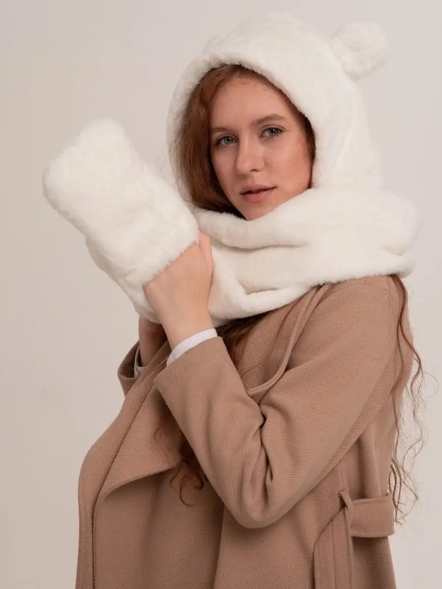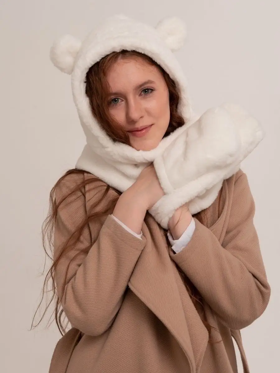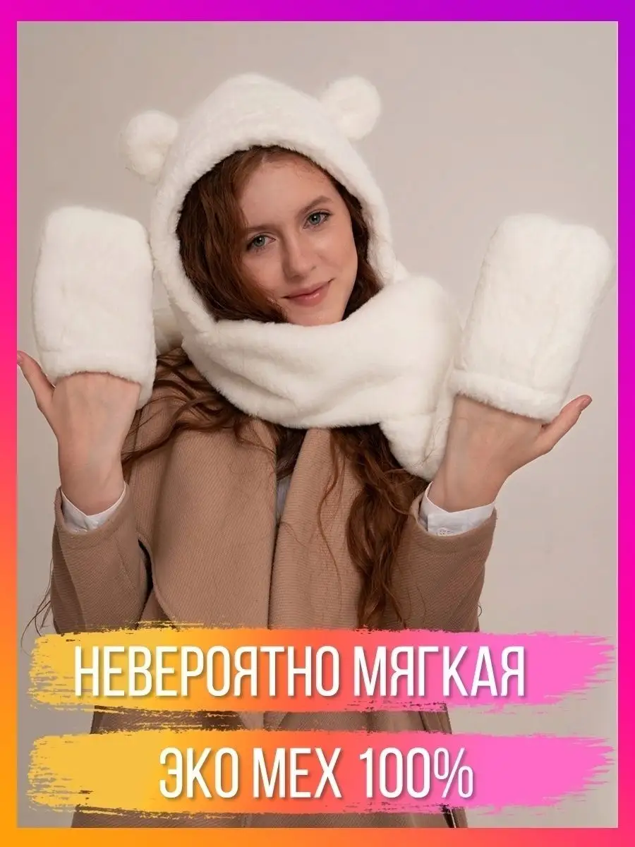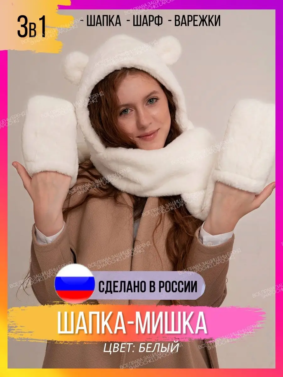 Описание: ВНИМАНИЕ! 3590р. - фиксированная цена на шапки в 2022 и 2023г. Если вы видите цену ниже, вам повезло! Ловите скидку! :) СДЕЛАНО В РОССИИ. Невероятно мягкая и теплая женская шапка зимняя с ушками стильный и яркий аксессуар для женщин, девочек, девушек и подростков и настоящий тренд этого сезона. Головной убор 3 в 1 заменит шапку, шарф или снуд, варежки или перчатки. Изготовлена из высококачественного, премиального эко меха. Два слоя меха надежно защищают от холодов и морозов, а удобная форма шапочки в виде капора с шарфом и варежками позволяет носить шапку как свободный съемный капюшон или затянуть шубку тедди плотнее, закрыть голову, уши и шею и носить как шапку ушанку. Благодаря регулируемому размеру шапочка идеально подойдет на любой размер головы как шапка женская, детская или стильная шапка для девочки подростка. Шапка с шарфом и ушками Тедди представлена в нескольких цветах бежевая, белая, черная или розовая шапка, что позволяет выбрать цвет, который идеально будет сочетаться с Вашим гардеробом. Осенняя или зимняя демисезонная шапка станет превосходным подарком любимой девушке, подруге или дочке на любой праздник (На новый год, рождество 2023, именины, день рождения...) Шапка-ушанка. Шапка ушанка с ушками. Комплект шапка и шарф. Головные уборы для женщин. Шапка женская зимняя меховая будет согревать вас в морозные русские зимы! Шапка универсальная, комплект (набор). Она одновременно шапка, снуд, шарф, перчатки или капор (съемный капюшон). Подростковая шапка или шапка для подростка идеально подойдёт для креативных и уникальных девушек. Шапка с шарфом женская выделит из толпы и подарит яркие эмоции вам и окружающим. Подходит наша шапка со снудом и для девочки 7-13 лет, и для подростков, и для взрослых. Размер и теплота шапки удобно регулируются. Комплект шапка и шарф - незаменимый аксессуар для тех, кто не любит носить шапки. А так же для тех, кто любит быть креативным, не боится проявлять себя и ценит практичность в деталях. Шапка с ушами сшита с любовью в России. Заказывайте шапочку на примерку! С уважением, команда бренда SHAPOSHKI LAPOCHKI.