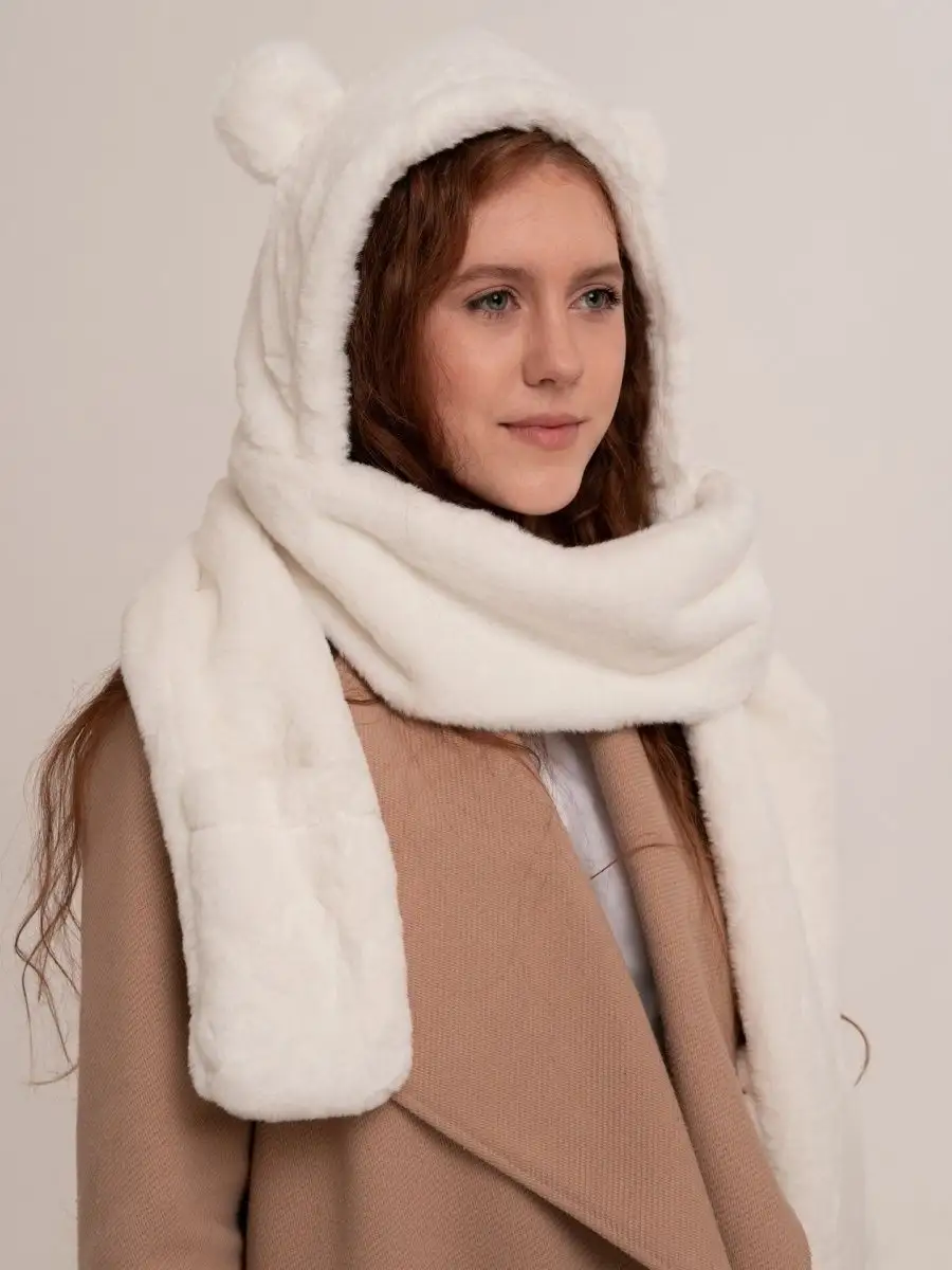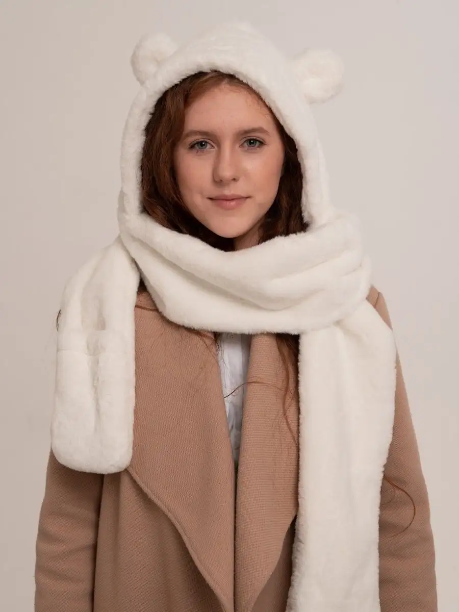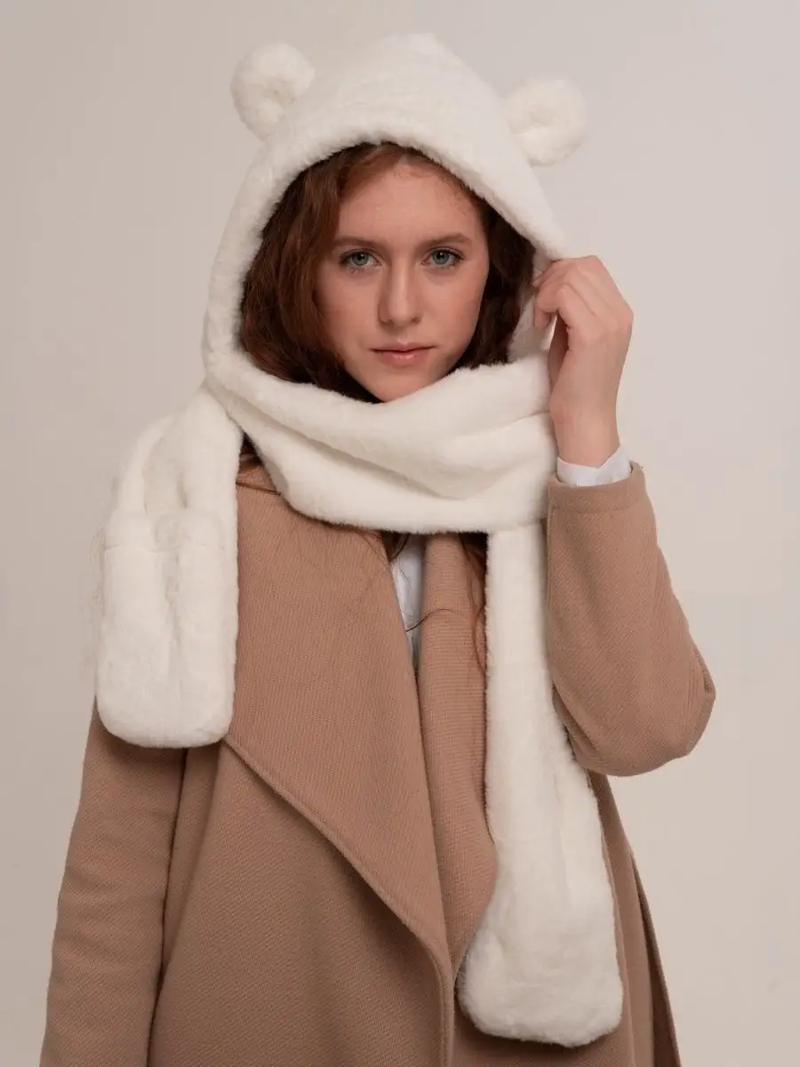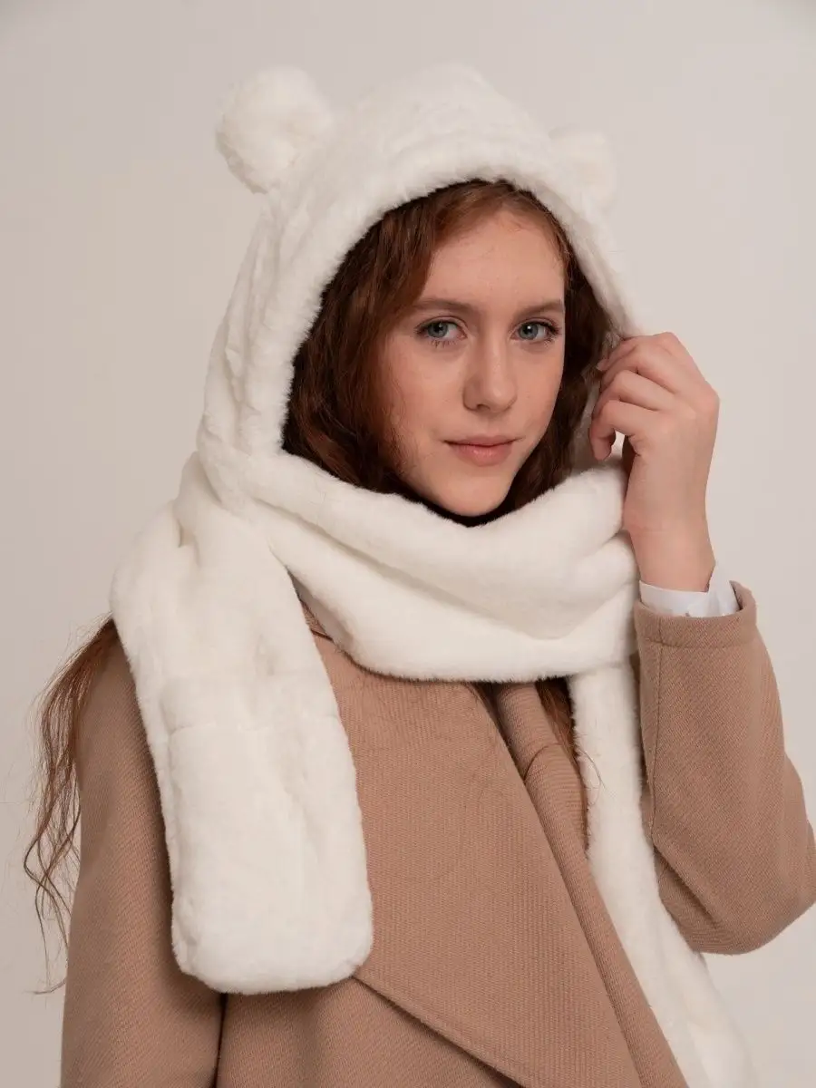 Описание: ВНИМАНИЕ! 3590р. - фиксированная цена на шапки в 2022 и 2023г. Если вы видите цену ниже, вам повезло! Ловите скидку! :) СДЕЛАНО В РОССИИ. Невероятно мягкая и теплая женская шапка зимняя с ушками стильный и яркий аксессуар для женщин, девочек, девушек и подростков и настоящий тренд этого сезона. Головной убор 3 в 1 заменит шапку, шарф или снуд, варежки или перчатки. Изготовлена из высококачественного, премиального эко меха. Два слоя меха надежно защищают от холодов и морозов, а удобная форма шапочки в виде капора с шарфом и варежками позволяет носить шапку как свободный съемный капюшон или затянуть шубку тедди плотнее, закрыть голову, уши и шею и носить как шапку ушанку. Благодаря регулируемому размеру шапочка идеально подойдет на любой размер головы как шапка женская, детская или стильная шапка для девочки подростка. Шапка с шарфом и ушками Тедди представлена в нескольких цветах бежевая, белая, черная или розовая шапка, что позволяет выбрать цвет, который идеально будет сочетаться с Вашим гардеробом. Осенняя или зимняя демисезонная шапка станет превосходным подарком любимой девушке, подруге или дочке на любой праздник (На новый год, рождество 2023, именины, день рождения...) Шапка-ушанка. Шапка ушанка с ушками. Комплект шапка и шарф. Головные уборы для женщин. Шапка женская зимняя меховая будет согревать вас в морозные русские зимы! Шапка универсальная, комплект (набор). Она одновременно шапка, снуд, шарф, перчатки или капор (съемный капюшон). Подростковая шапка или шапка для подростка идеально подойдёт для креативных и уникальных девушек. Шапка с шарфом женская выделит из толпы и подарит яркие эмоции вам и окружающим. Подходит наша шапка со снудом и для девочки 7-13 лет, и для подростков, и для взрослых. Размер и теплота шапки удобно регулируются. Комплект шапка и шарф - незаменимый аксессуар для тех, кто не любит носить шапки. А так же для тех, кто любит быть креативным, не боится проявлять себя и ценит практичность в деталях. Шапка с ушами сшита с любовью в России. Заказывайте шапочку на примерку! С уважением, команда бренда SHAPOSHKI LAPOCHKI.