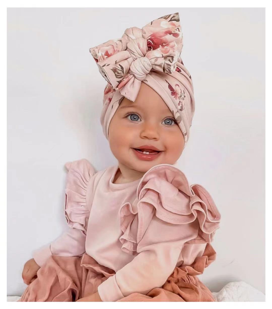 Шапка-тюрбан для новорожденных, с тройным узлом, винтажная шапка с принтом, с бантом, индийский пончик, реквизит для фотосъемки, детский головной убор
