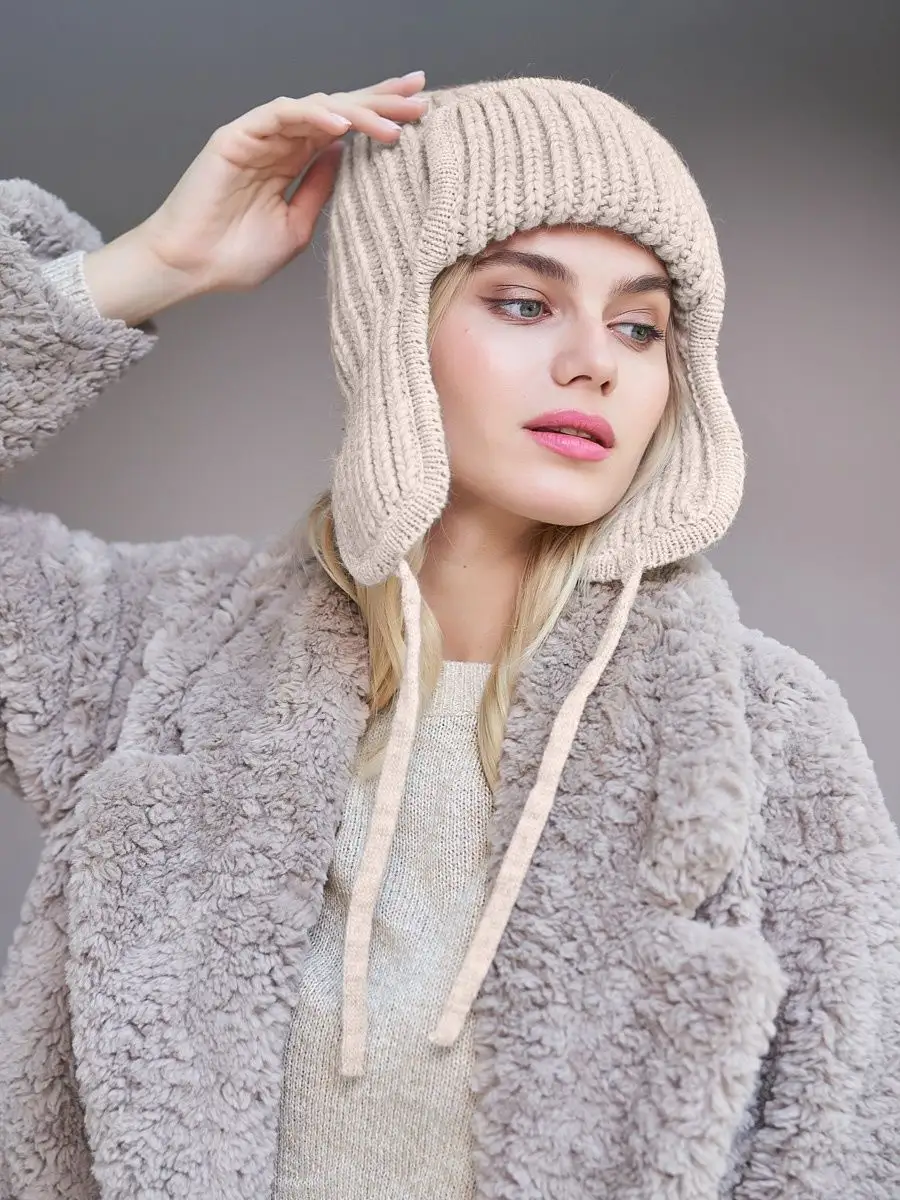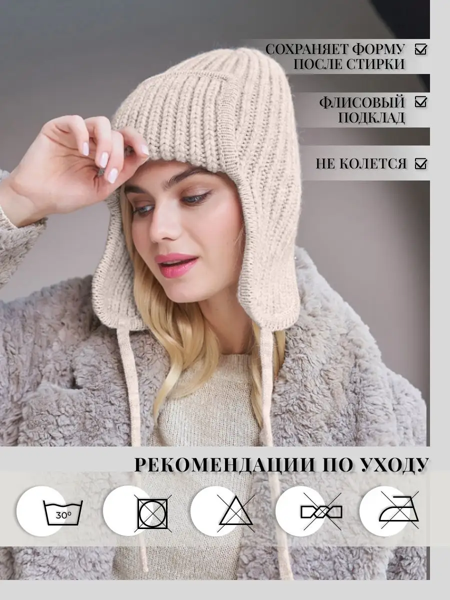Шапка ушанка женская зимняя вязаная флисовая осень зима