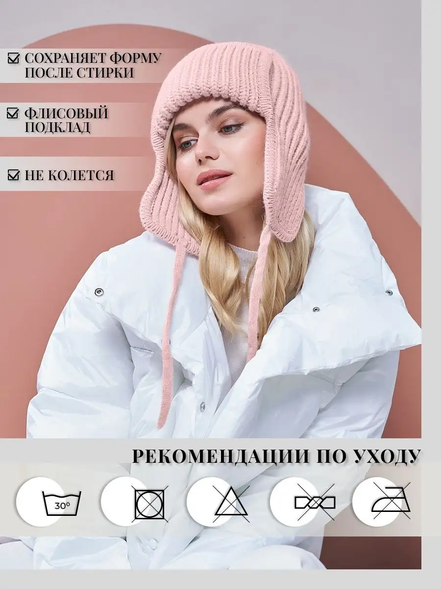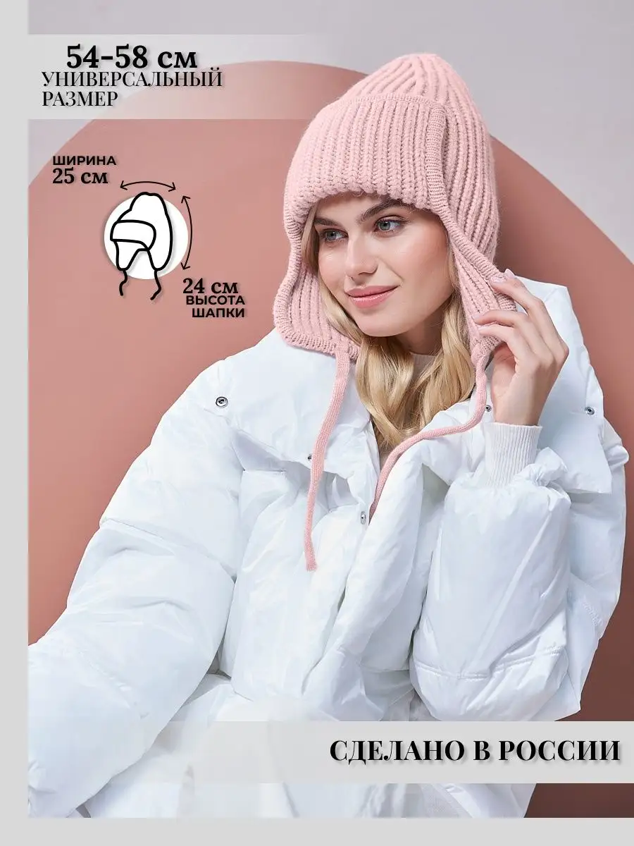 Шапка ушанка женская зимняя вязаная флисовая осень зима