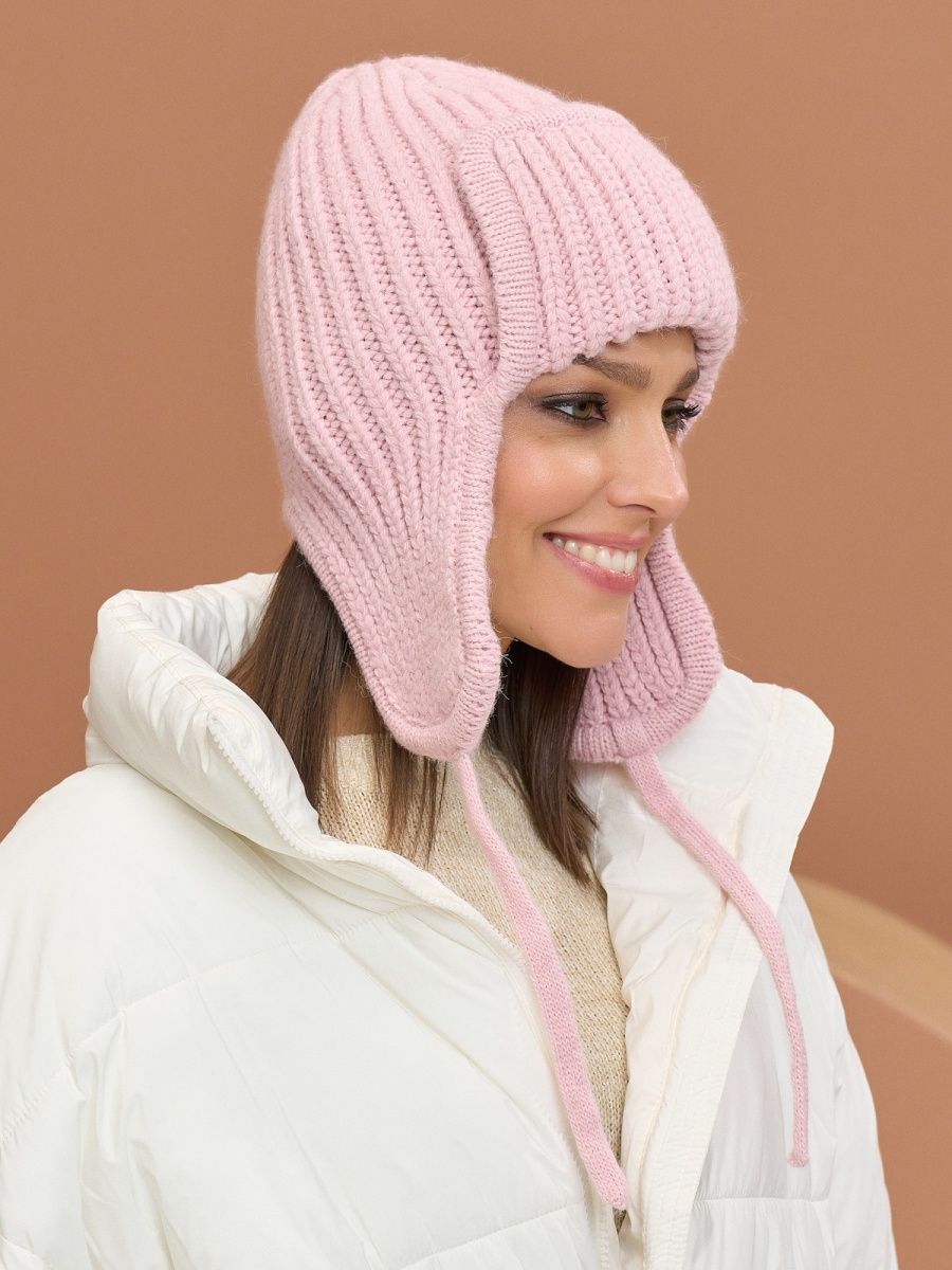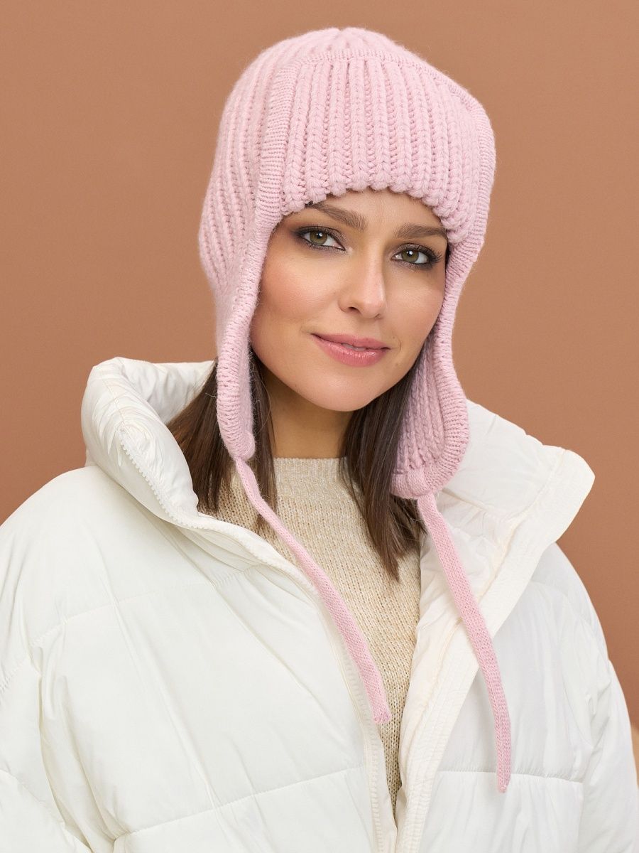 Шапка ушанка женская зимняя вязаная флисовая осень зима