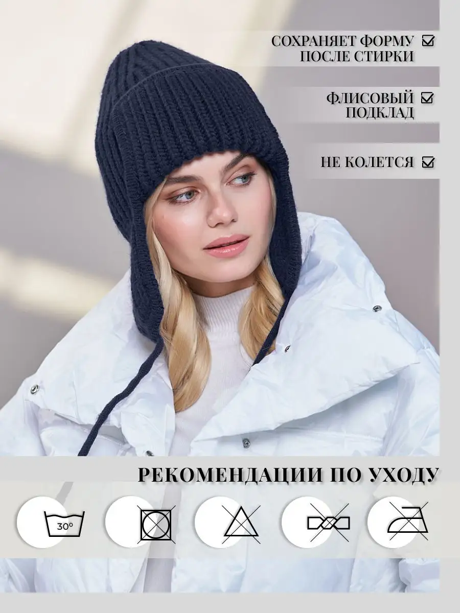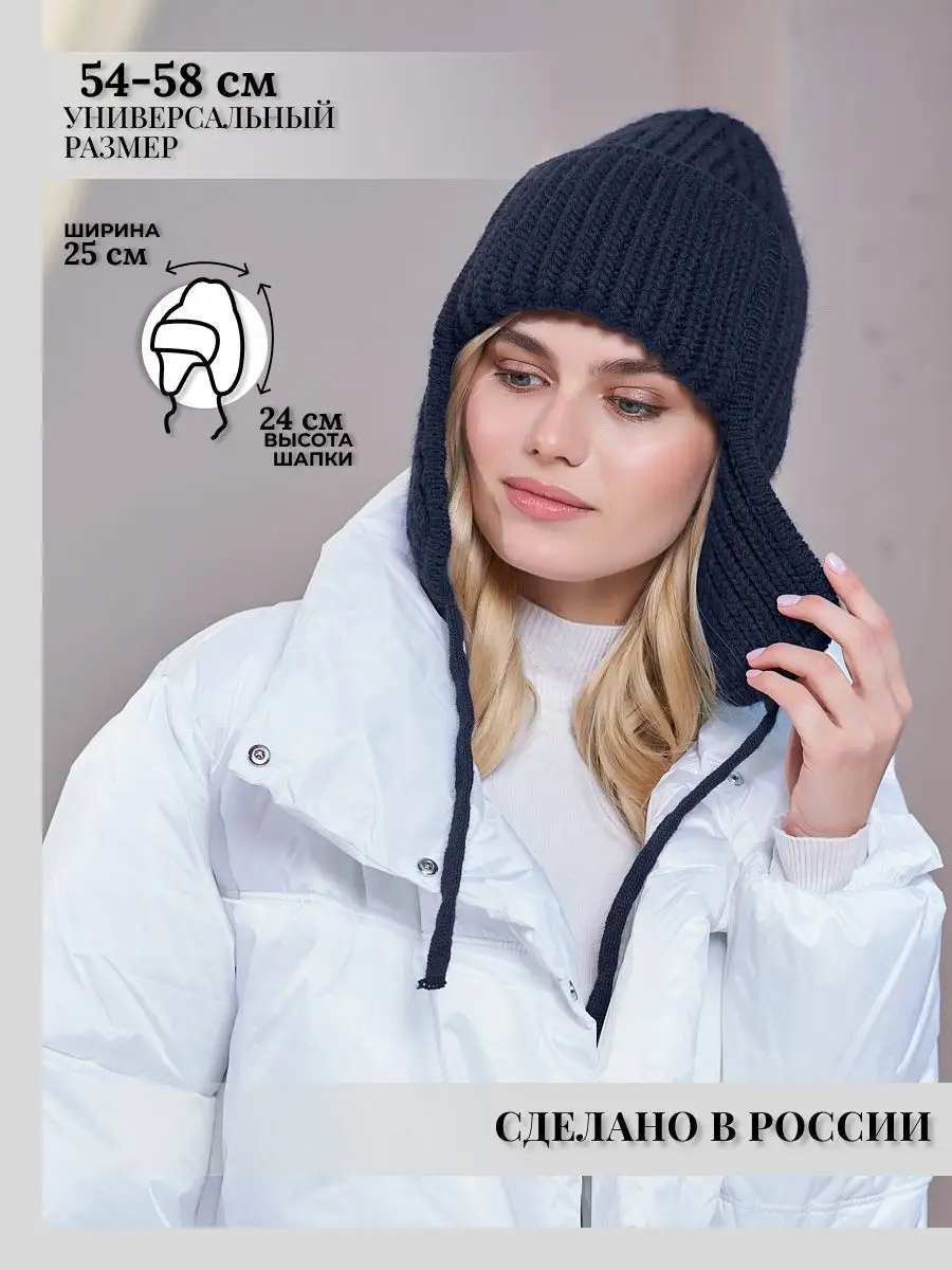 Шапка ушанка женская зимняя вязаная флисовая осень зима