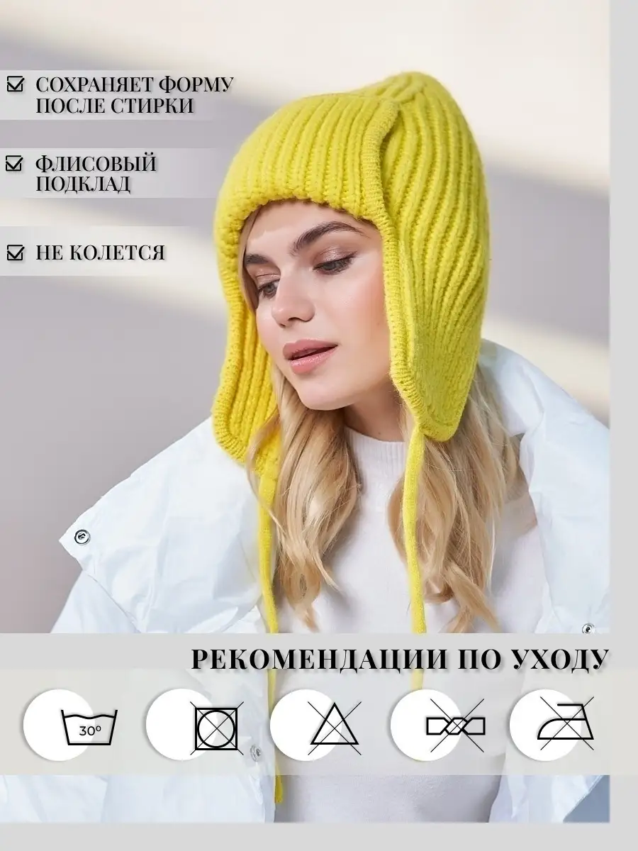 Шапка ушанка женская зимняя вязаная флисовая осень зима