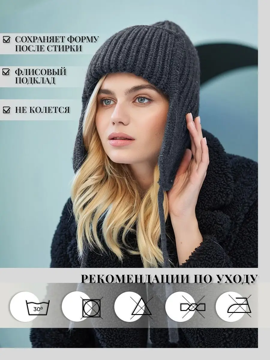 Шапка ушанка женская зимняя вязаная флисовая осень зима