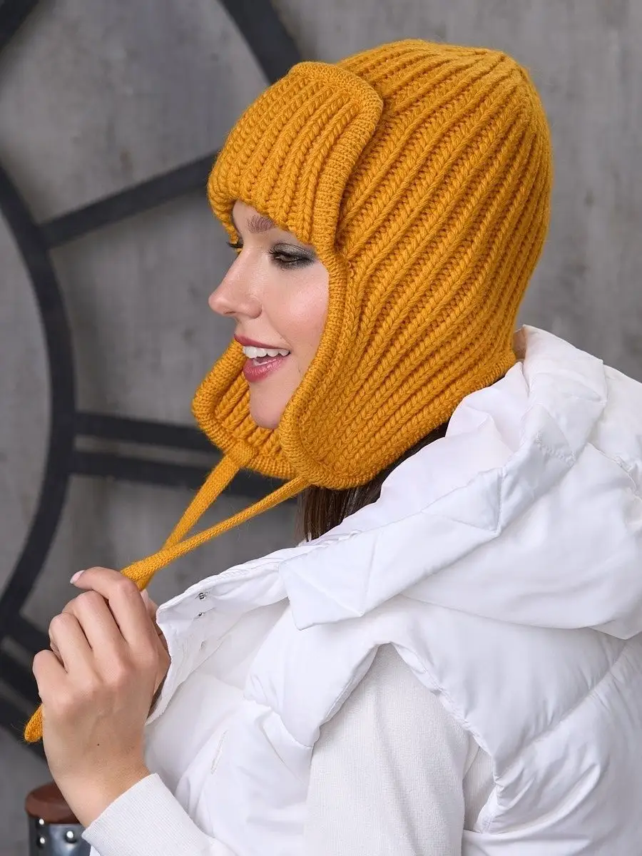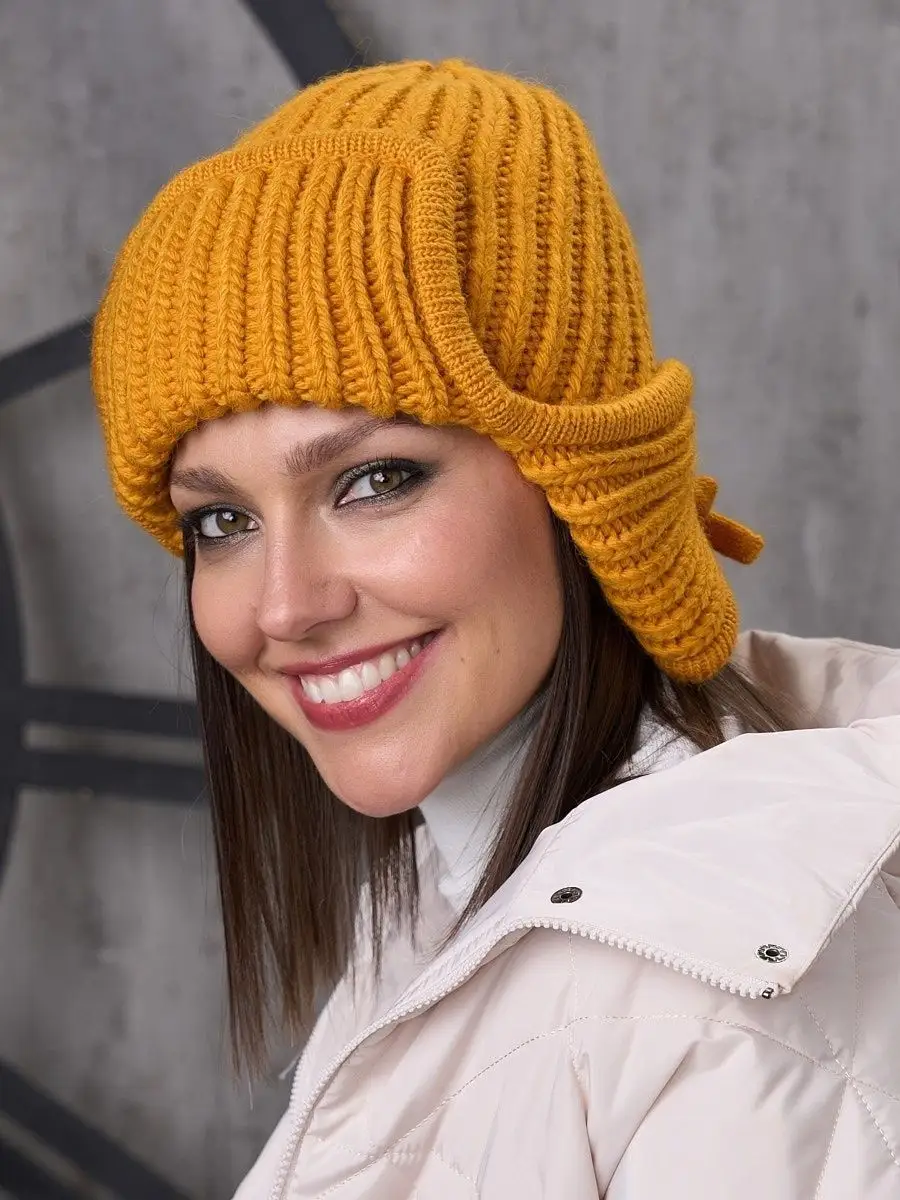 Шапка ушанка женская зимняя вязаная флисовая осень зима
