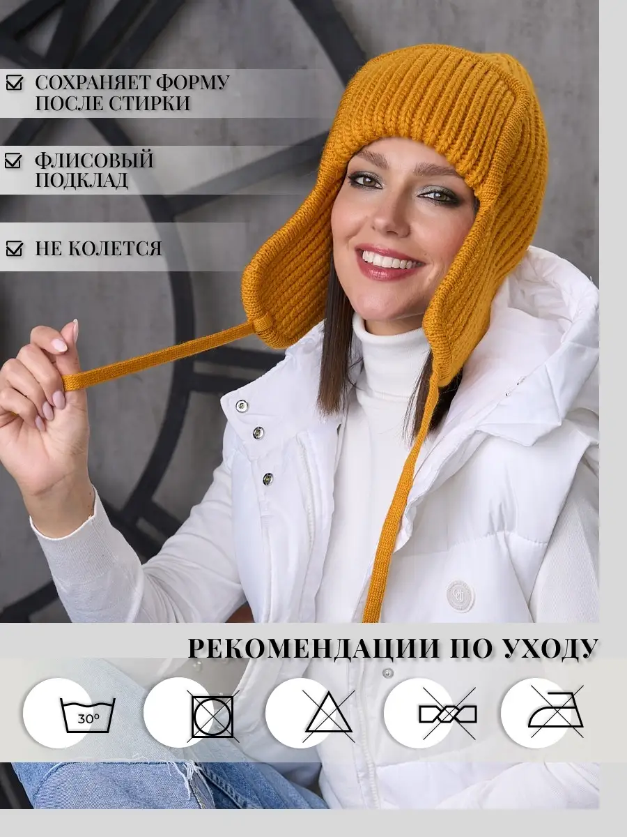 Описание: Женская зимняя вязаная шапка ушанка Супер от бренда FARGO — стильный головной убор для женщины, девушки и подростка на зиму или весну и осень, когда наступают холода. Теплая натуральная шапка-ушанка на завязках и флисе премиум качества — это топ-модель 2023 и 2024 года. Брендовая вязанная флисовая шапочка от Фарго хорошо закрывает уши, её можно приобрести в подарок не только для подростков, оценят и взрослые дамы! В составе мягкая согревающая шерсть, а утеплителем шапки-ушанки выступает флис. Спортивная толстая молодёжная ушанка подходит под спорт стиль 2023-2024: для горнолыжки, сноубординга (сноуборда) , бега, снегохода, походов, прогулок, ходьбы зимой и в осенний (осеняя), весенний сезон (весна-осень). Она непродуваемая, шерстяная, может носиться как демисезонная, подклад и premium трикотаж удерживают тепло. Такие дизайнерские универсальные утепленные шапки с отворотом и мягкой подкладкой подойдут на размер: 54, 55, 56, 57, 58 для больших и маленьких объемов головы. Красивая, модная, цветная (разные цвета в ассортименте) трикотажная ушанка — милый аксессуар и интересная подарочная идея для любого подростка. Мы предлагаем разноцветный выбор этой модели, а также в нашем магазине вы можете найти и другие зимниеголовные уборы. Производство Россия. Размеры: Ширина — 25 см Высота — 24 см Шапки торгового бренда FARGO производятся при помощи легендарного немецкого оборудования марки Stoll — лучшие станки из доступных в России. Мы создаём качественные и проверенные временем изделия, с уникальным дизайном и структурой. Приобретая наши брендовые товары, Вы гарантированно получаете: — всегда аккуратно пришитый флис и декоративные элементы; — мягкую иностранную пряжу, не склонную к деформации и образованию катышек; — ровные строчки и швы; — практичность, долговечность и износостойкость изделия. Наши изделия не требуют специального ухода: достаточно деликатной стирки при 30° и вертикальной сушки. FARGO — это всегда тщательный, щепетильный подход к производству. Мы не экономим на качестве! Приятных покупок!