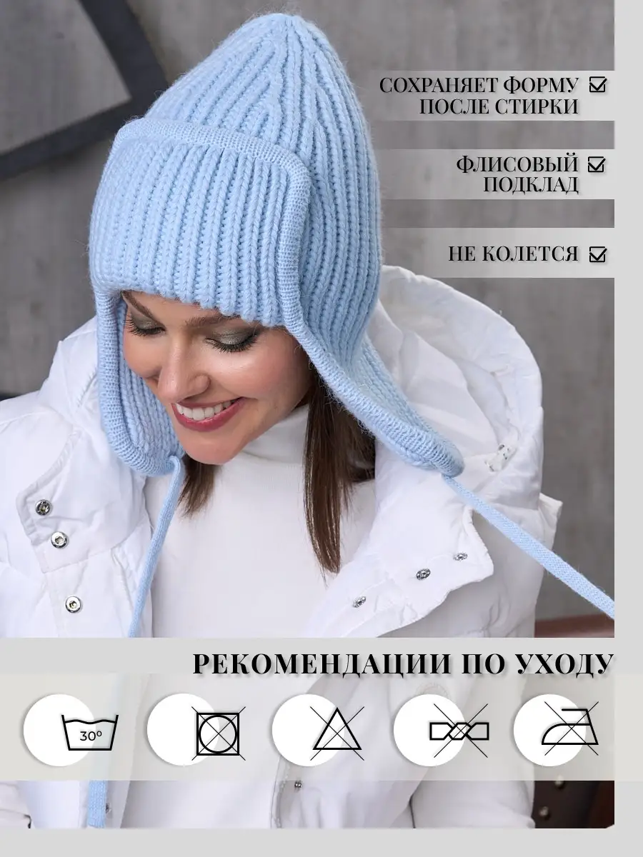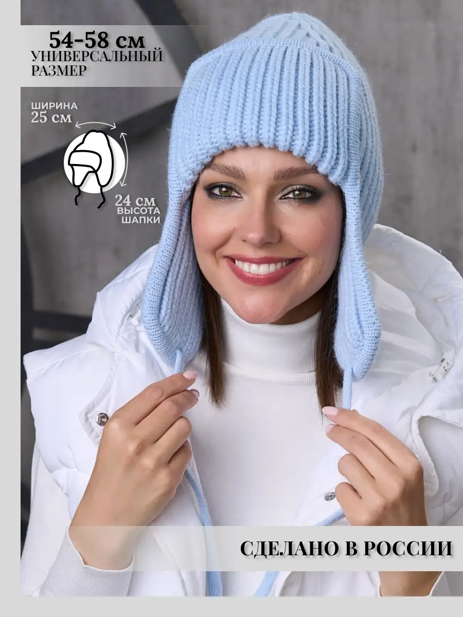 Шапка ушанка женская зимняя вязаная флисовая осень зима