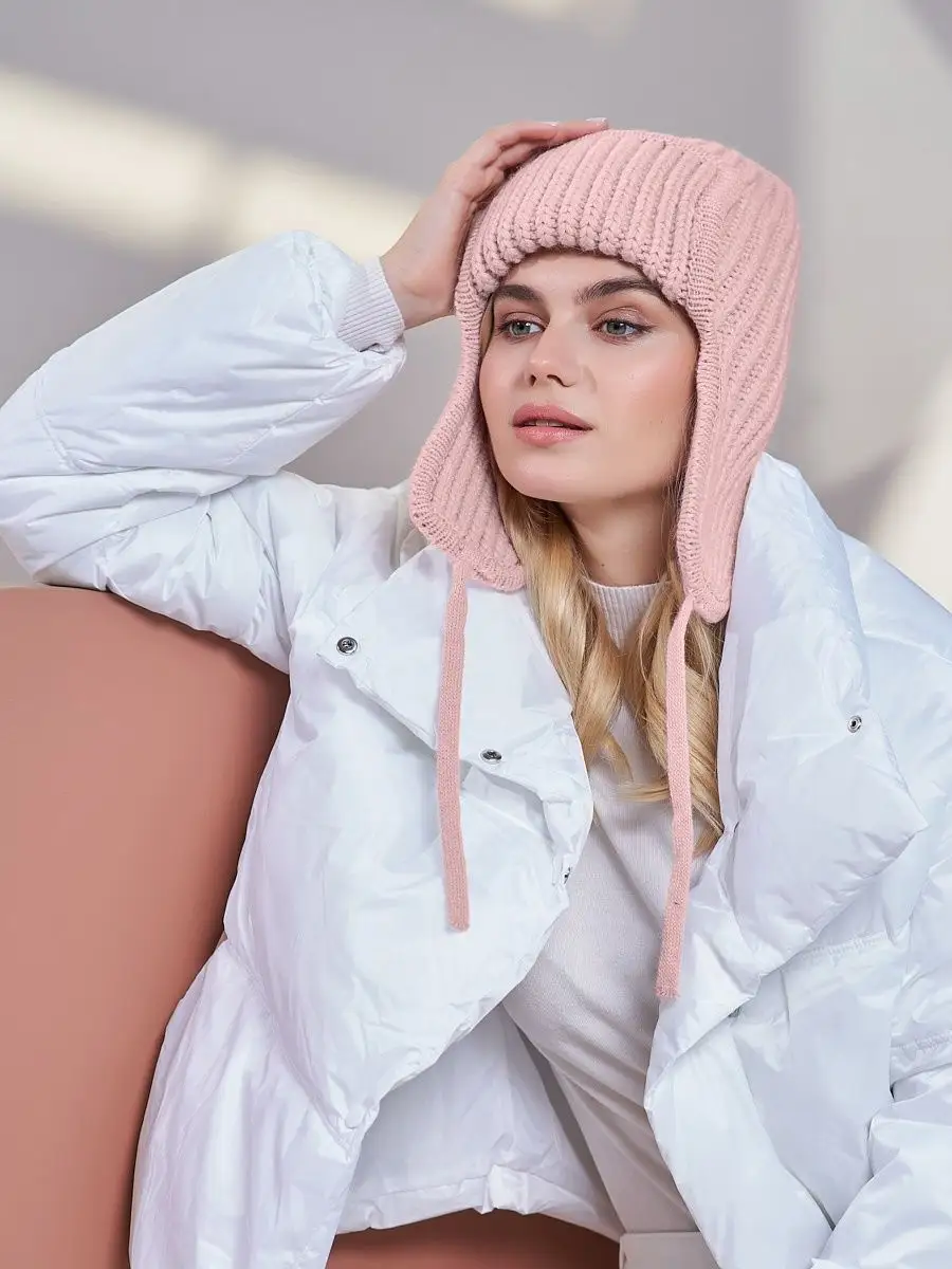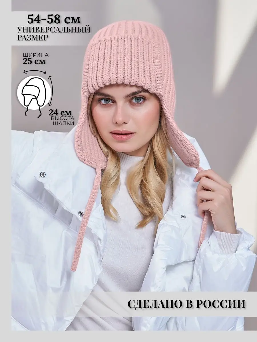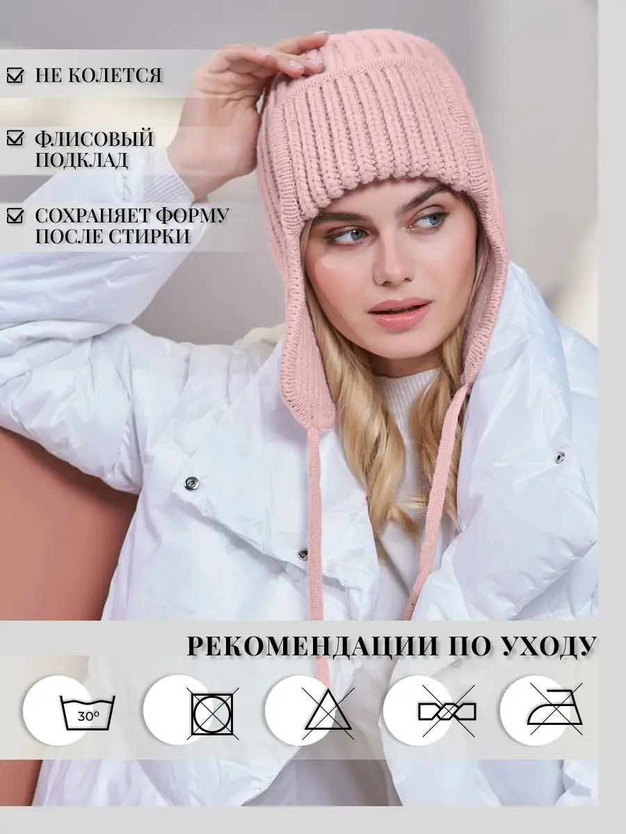 Шапка ушанка женская зимняя вязаная флисовая осень зима