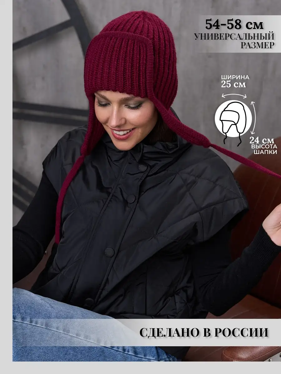 Шапка ушанка женская зимняя вязаная флисовая осень зима