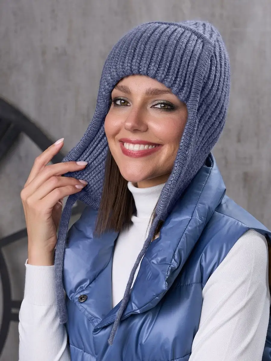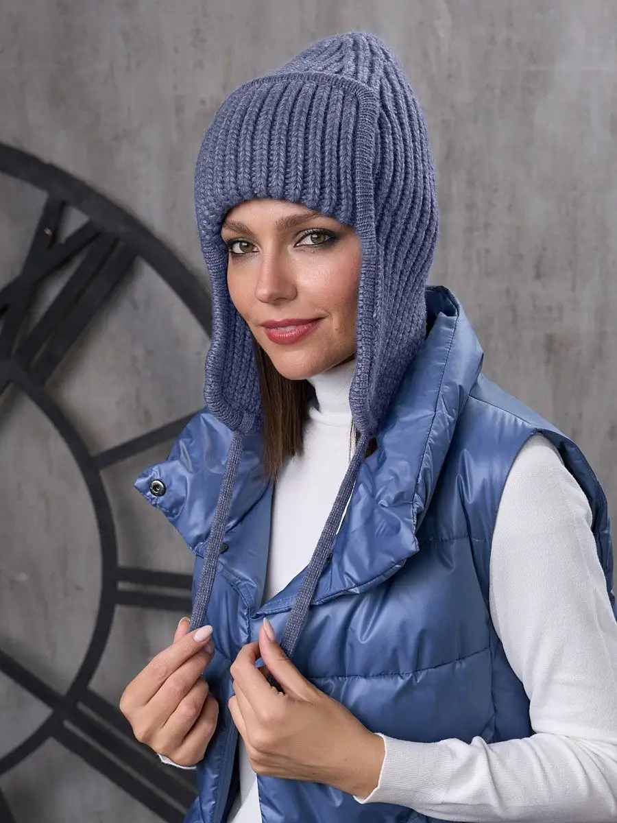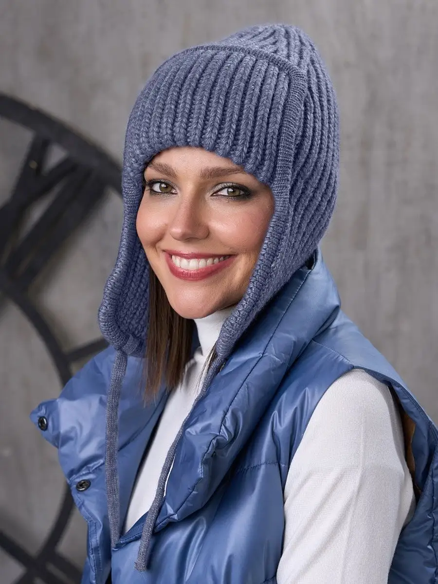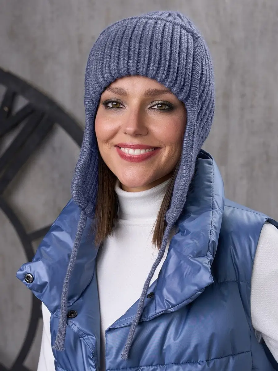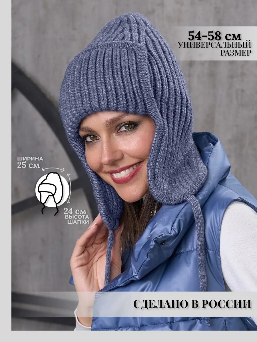 Шапка ушанка женская зимняя вязаная флисовая осень зима