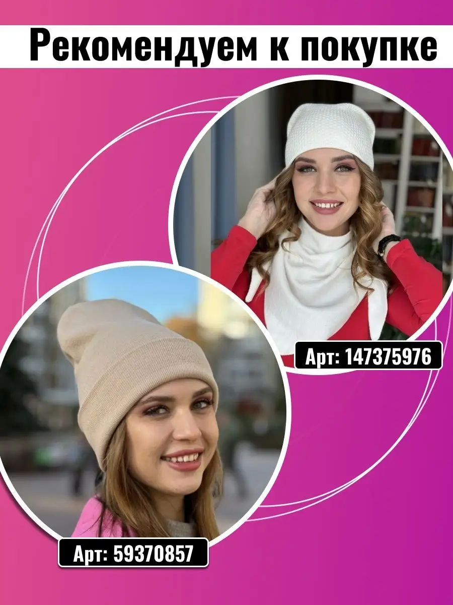 Описание: В линейки товаров представлены две модели шапок, одна из которых идет как отдельная шапка, а другая в комплекте со снудом, просьба ориентироваться на фото. В составе нашей шапки женской используется ИТАЛЬЯНСКАЯ ПРЯЖА ВЫСОКОГО КАЧЕСТВА, очень мягкая и нежная как КАШЕМИР, после стирки не скатывается и не садится. Утепляйтесь стильно. Шапка весенняя женская вязаная осенняя очень качественно согреет вас в любой мороз. Натуральная шерсть отлично тянется и облегает голову. Бежевые осенние женские шапки для девочек подростков и женщин подойдут под любой стиль. Шапка бини с отворотом будет отлично смотреться не только с пуховиком или худи под спортивный стиль, но и с курткой, дубленкой или шубой. Утеплённая демисезонная черная шапка женская из качественной шерсти очень мягкая: комфорт при носке обеспечен. Шапка спортивная тонкая подростковая, молодежная, стильная и модная, но при этом теплая за счет шерсти в составе, вы можете быть уверены в сохранении своего здоровья. Шерстяная шапка для женщины и девушки или девочки подростка может использоваться в различных ситуациях: на отдыхе, спорте или прогулках с коляской. Шапка женская не на флисе, но за счет в шерсти в составе очень теплая подойдет на осень весну и зиму. Стильный зимний трендовый аксессуар подросткам мальчикам или девочкам будет отличным подарок для любителей активного вида спорта, подойдёт в качестве теплой мужской шапки для рыбалки зимой, охоты в зимнее время года папе, мужу или дедушке. Шапка оверсайз также отличный вариант для любителей активного отдыха: туризм, походы, сноубординг, горные лыжи. Универсальная шапка женская бинни кашемировая с подворотом подойдет не только девушке, девочке, женщине, но и даже мужчине и мальчику подростку. Головной женский убор станет прекрасным подарком на день рождения или любой праздник. Очень практичная и износостойкая шапка тыковка будет радовать свою хозяйку не один сезон. Также помимо шапки представлен вязаный женский весенний комплект шапка и снуд женская осенняя из натуральной шерсти и акрила. Набор, шапка и снуд весна, осень зима, очень практичный, удобный и теплый предложен в нескольких расцветках. Объемный шарф-снуд можно носить как на шее, так и на голове вместо головного убора или капора. Шапка и снуд зимний женский в составе содержит шерсть которая согреет вас не только осенью, но и зимой в период холодов. В наших женских шапках и наборах со снудом вы согреетесь в любое время года: осень весна и зима пройдёт в тепле с заботой о вас. В нашей коллекции шапок так же представлена новая трендовая модель - шапка кошка с ушками. Шапка кошечка - хит весны 2023 года. Такой подарок как шапка с ушами кошки женская понравится любимой девушке, жене, подруге.