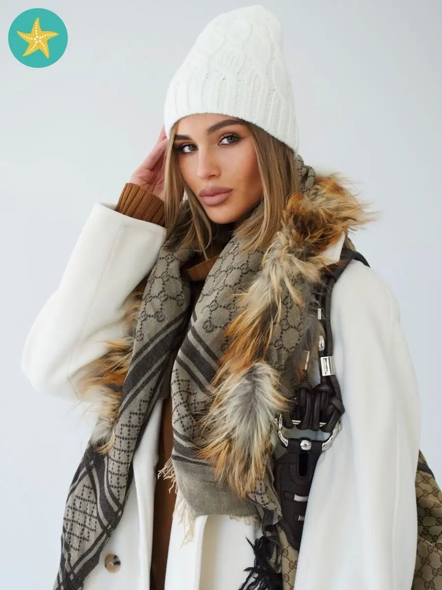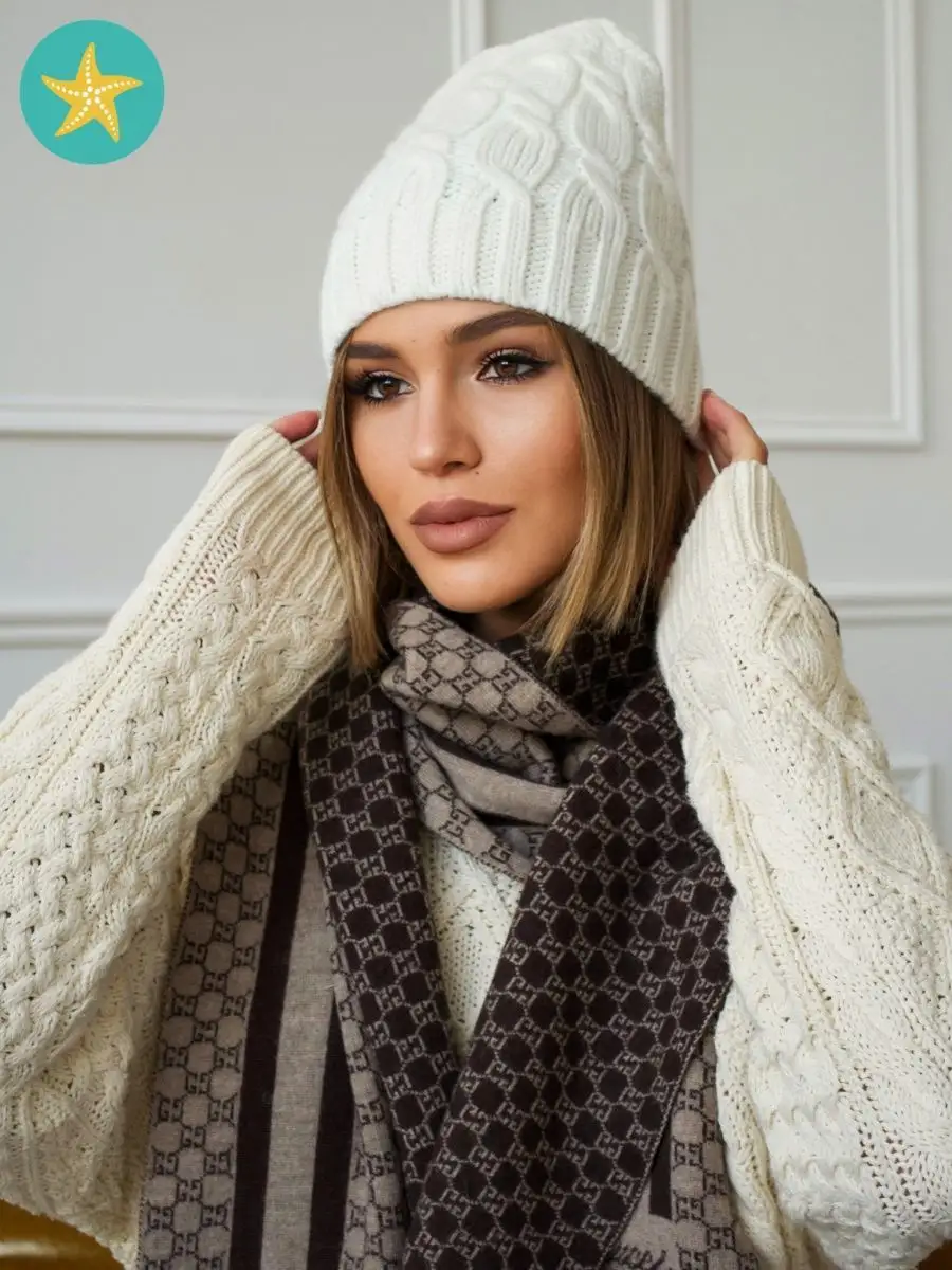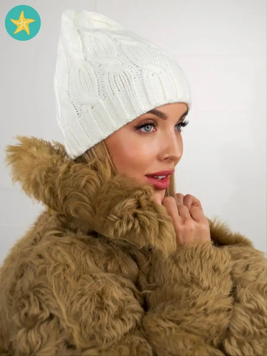 Фактура материала вязаная женская шапка