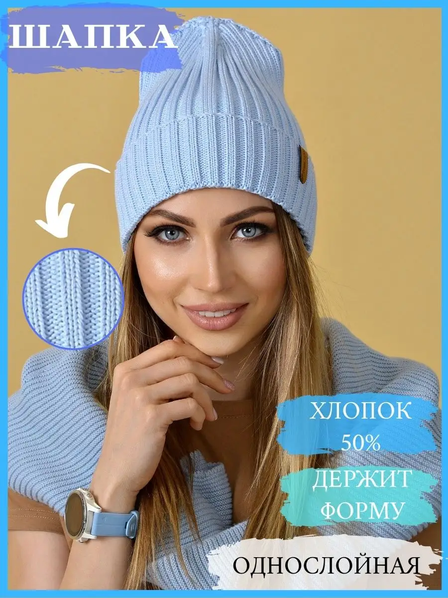 шапка женская осень весна вязаная с отворотом